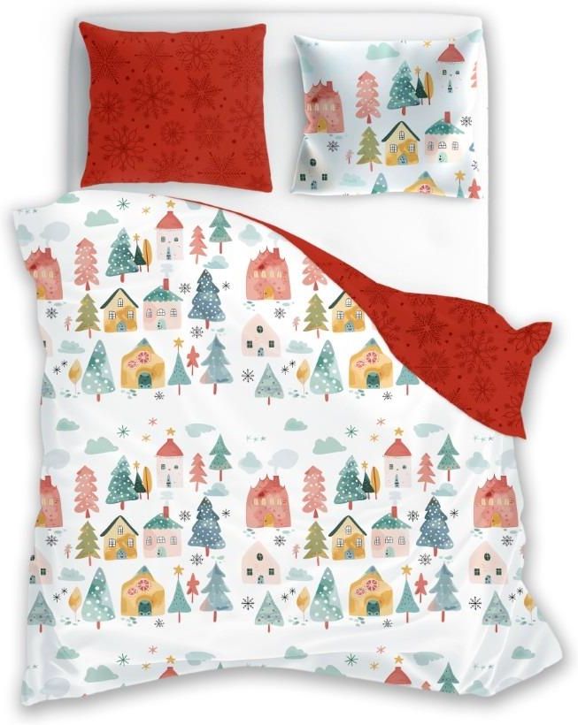 Komplet pościeli bawełnianej 160x200 + 2x70x80 cm Scandic Akwarelowe Miasteczko Zanurz się w magiczny świat pastelowych barw z pościelą Scandic Akwarelowe Miasteczko. Ten wyjątkowy komplet w stylu skandynawskim urzeka subtelnym, ręcznie malowanym wzorem domków i choinek, które wyglądają jak namalowane pędzlem w zimowej akwareli. To pościel, która wprowadza do sypialni spokój, radość i artystyczny urok. Cechy produktu: Naturalny materiał: Pościel wykonana w 100% z miękkiej, oddychaj..