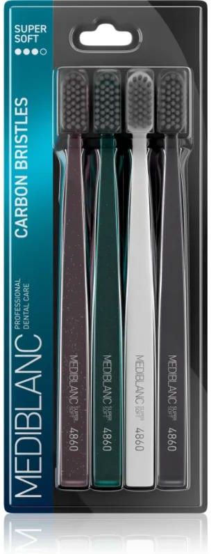 MEDIBLANC Toothbrush Super Soft, 4 szt., Zestawy dla mężczyzn, Właściwości: łatwo się nią manipuluje zapewnia delikatną pielęgnację dziąseł i szkliwa zębów do czyszczenia wrażliwych zębów bardzo miękkie włosie korzystny zakup Sposób użycia: Nanieś na szczoteczkę pastę do zębów, zwilż, wyczyść zęby i jamę ustną.