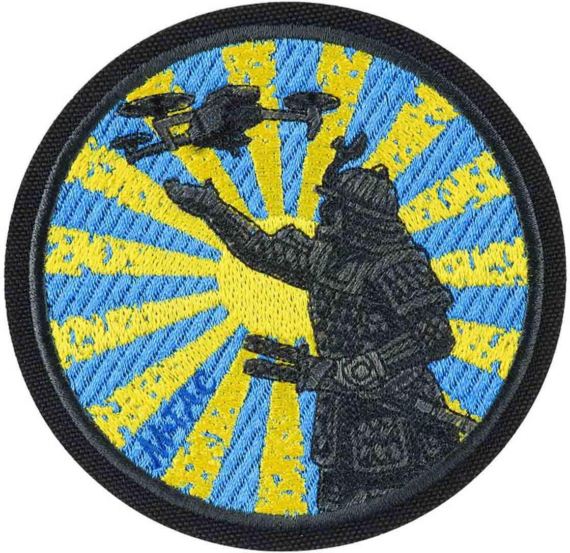Naszywka Morale Patch, wykonana z trwałej Cordury 500D w technologii kolorowego haftu maszynowego, przedstawiająca samuraja pilotującego drona. Emblemat został wyposażony w rzep. Kolor: Black/Blue/Yellow.
