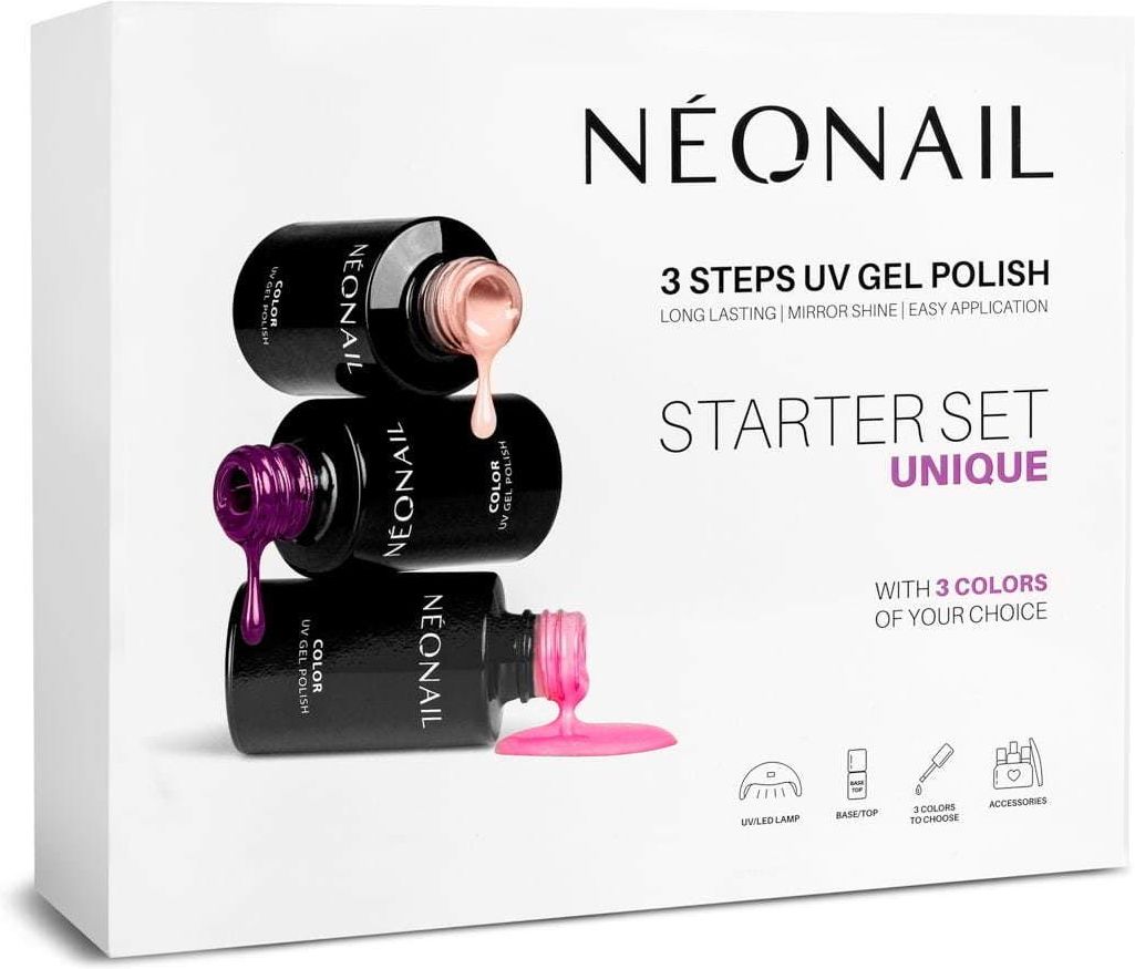 NEONAIL Zestaw do hybryd UNIQUE: 3 kolory + baza/top 2w1 + lampa LED 18W/36 Grodzisk Wielkopolski