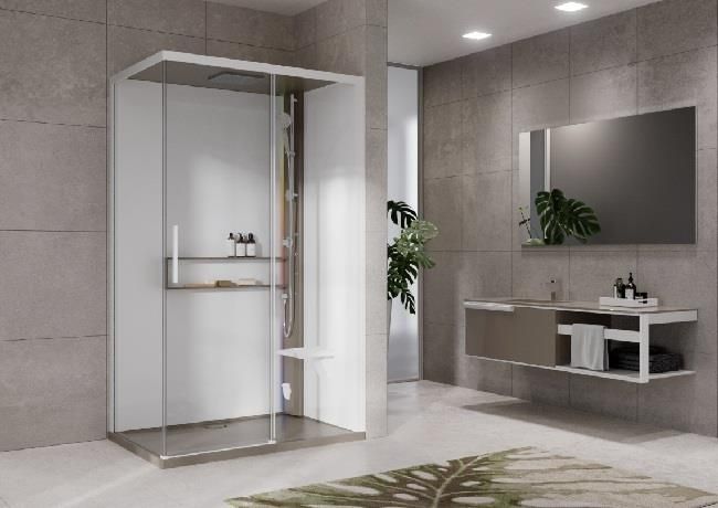 Novellini Glax kabina masażowo-parowaKod produktu: G222P120DT5-1TUWymiar: 120x80 cm Wysokość: 210 cm (C)Wysokość brodzika: 4,5 cmSzerokość wejścia: 49 cm (*)Kolor wykończenia: cordaPowłoka: Crystal Clear Montaż: na brodziku Drzwi: przesuwne Szkło: przejrzysteStrona: prawaMateriał: szkło bezpieczne hartowane 6mm (drzwi) i 5mm (ścianka boczna)Typ: prostokątnyBateria: termostatycznaDeszczownica wbudowana w zadaszenieHydromasażSłuchawka prysznicowaSiedzisko składane BluetoothChromoterapiaGenerator pary+dyfuzor aromatuDotykowy panel sterującyPółka na kosmetykiGwarancja producenta.Szkło z powłoką CRYSTAL CLEAR obrabiane wewnętrznie. Zawsze błyszczące łatwe do czyszczenia dzięki specjalnej WYPALANEJ powłoce, która spowalnia formowanie się osadów wapiennych namnażanie bakteriiBluetoothHydromasażDotykowy panel Siedzisko składanePółka na kosmetykiBateria manualna lub termostatyczna isłuchawka prysznicowaDach z deszczownią Generator paryChromoterapia...