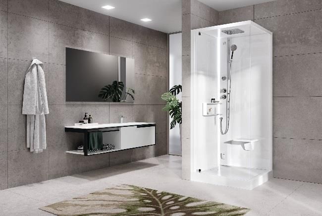 Novellini Glax kabina masażowo-parowa Kod produktu: G22GF99ST5-1UUWymiar: 90x90 cm Wysokość: 217 cm (C)Wysokość brodzika: 11,5 cmSzerokość wejścia: 71 cm (*)Kolor wykończenia: total białyPowłoka: Crystal Clear Montaż: na brodziku Drzwi: uchylne Szkło: przejrzysteStrona lewaMateriał: szkło bezpieczne hartowane 6mm (drzwi) i 5mm (ścianka boczna)Typ: kwadratowyBateria: termostatyczna Deszczownica wbudowana w zadaszenieHydromasażSłuchawka prysznicowaSiedzisko składane BluetoothChromoterapiaGenerator pary+dyfuzor aromatuDotykowy panel sterującyPółka na kosmetykiUkład wyposażenia w wewnątrz kabiny tak jak na rysunku technicznymGwarancja producenta.Szkło z powłoką CRYSTAL CLEAR obrabiane wewnętrznie. Zawsze błyszczące łatwe do czyszczenia dzięki specjalnej WYPALANEJ powłoce, która spowalnia formowanie się osadów wapiennych namnażanie bakteriiBluetoothHydromasażDotykowy panel Siedzisko składanePółka na kosmetykiBateria manualna lub termostatyczna isłuchawka prysznicowaDach z deszczownią Generator paryChromoterapia...