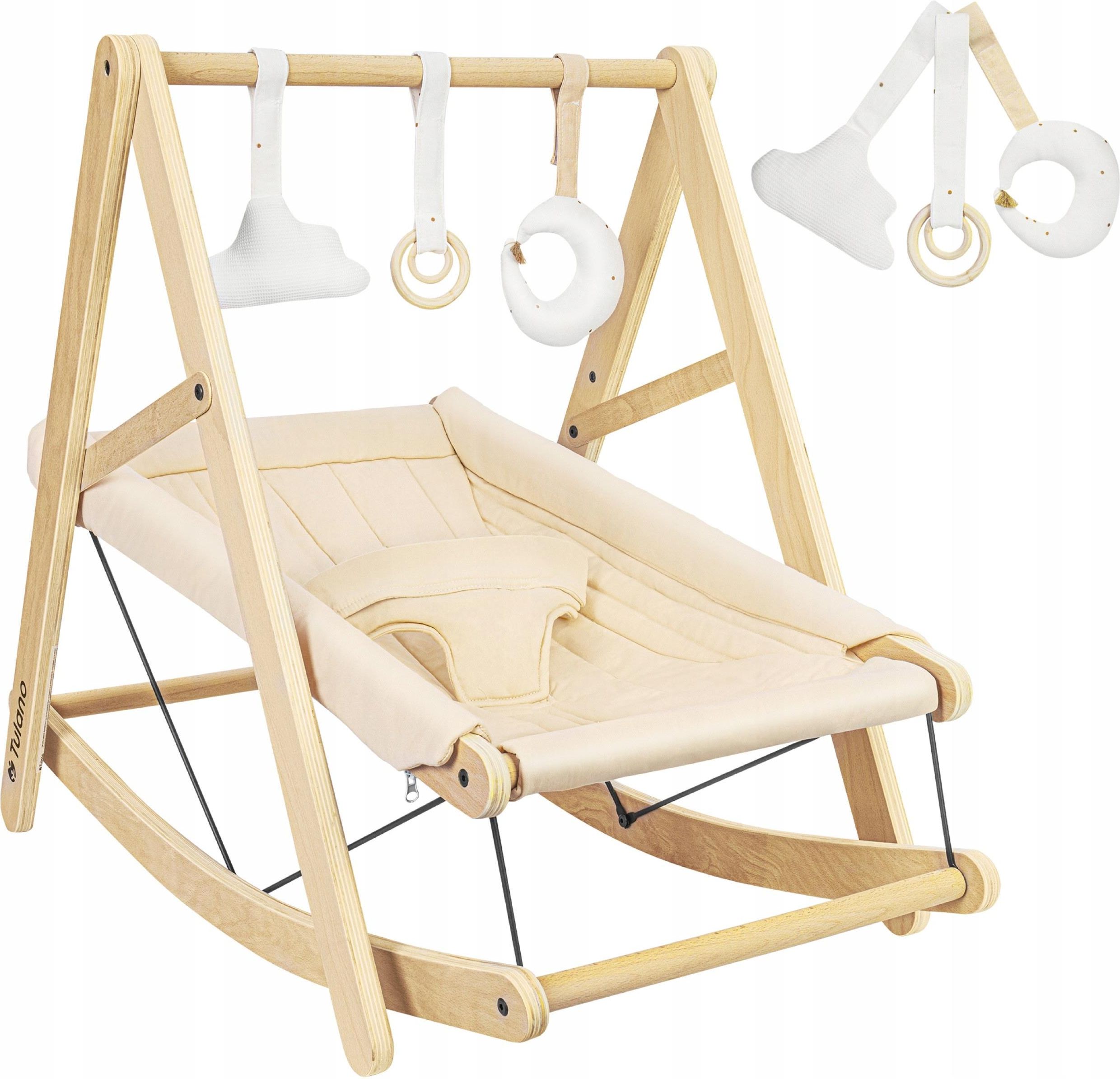Tulano Leżaczek Bujaczek Dla Niemowląt Drewniany Kremowy 2W1 Z Pasami Grodzisk Wielkopolski