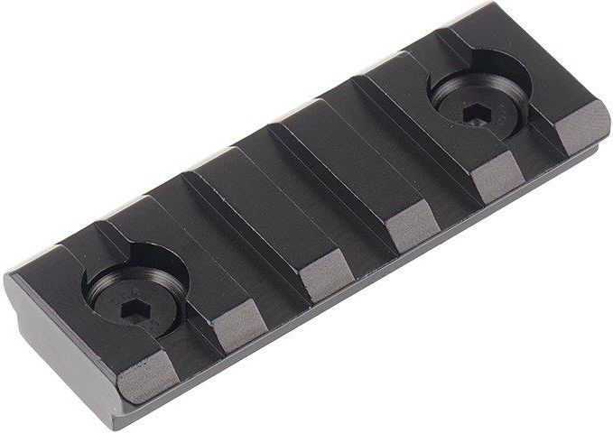 Dodatkowa szyna montażowa Picatinny wykonana z aluminium, przeznaczona do zamontowania na broni wyposażonej w szynę M-LOK. Pozwala na zamontowanie dodatkowego wyposażenia, takiego jak latarka, celownik czy chwyt przedni. Cechy Wytrzymała, prosta konstrukcja z aluminium. Standardowa szyna akcesoryjna Picatinny. Montaż w standardzie M-LOK, śruby i klucz inbusowy w zestawie Wykończenie w kolorze czarnym. splitter Dane techniczne Długość: 97 mm Materiał: Aluminium 6061-T6 Kolor: Czarny matowy Waga: 27 g
