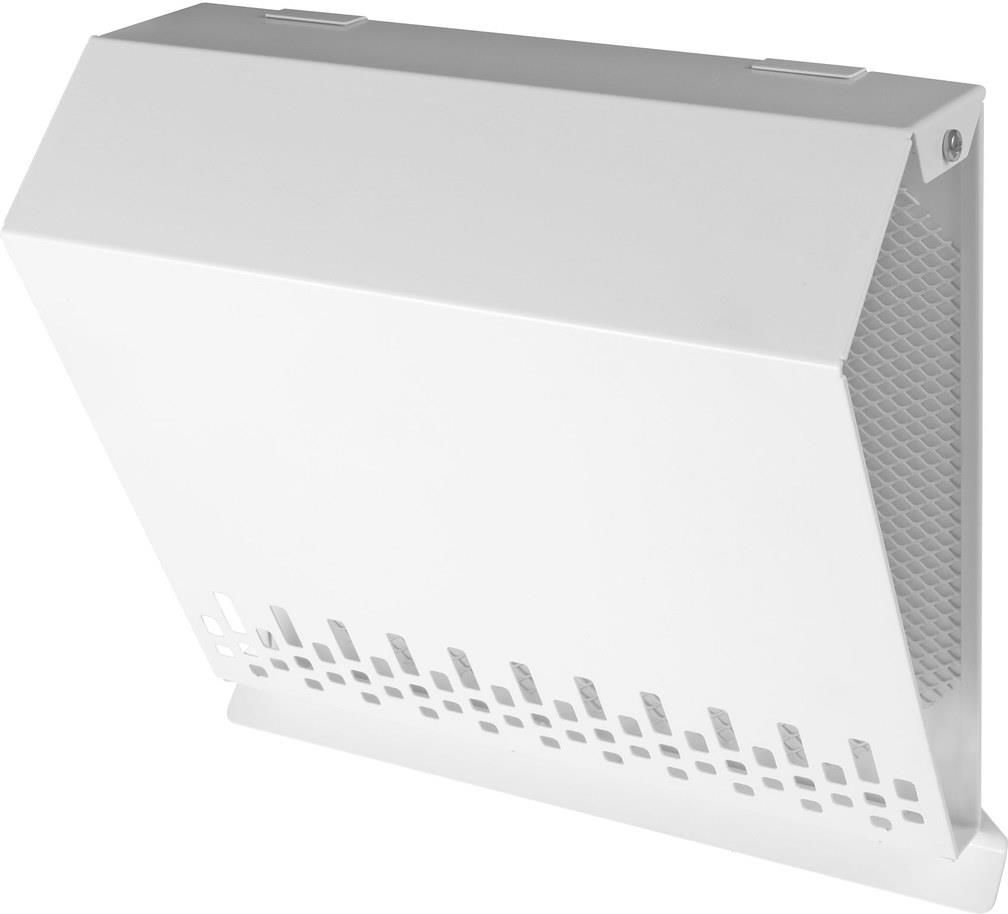 Czerpnia ścienna metalowa fi315, biały AWENTA PRO Model: VCSM315 Czerpnia ścienna VCSM315 AWENTA PRO to początkowy element kanałów w systemach wentylacji mechanicznej z rekuperacją. Do zastosowania zewnętrznego, w budynkach mieszkalnych i użyteczności publicznej. ZALETY Blacha stalowa ocynkowana o grubości 0,7mm malowana proszkowo z zastosowaniem technologii pasywnej dodatkowo zabezpieczającej przed korozją Standardowo wyposażona w okapnik chroniący ścianę przed powstaniem zacieków oraz siatkę zabezpieczającą otwór wlotowy. Specjalnie zaprojektowana geometria zapewnia minimalny opór / spadek ciśnienia czerpanego powietrza przy jednoczesnej osłonie przed wodą opadową. Gumowa uszczelka ułatwia montaż oraz zabezpiecza wypływanie wody z kanału wentylacyjnego. Otwory montażowe w narożnikach pozwalają na przykręcenie do ściany. Boczne umiejscowienie wkrętów mocujących odłączalnego frontu wyrzutni ułatwia montaż oraz demontaż do konserwacji.