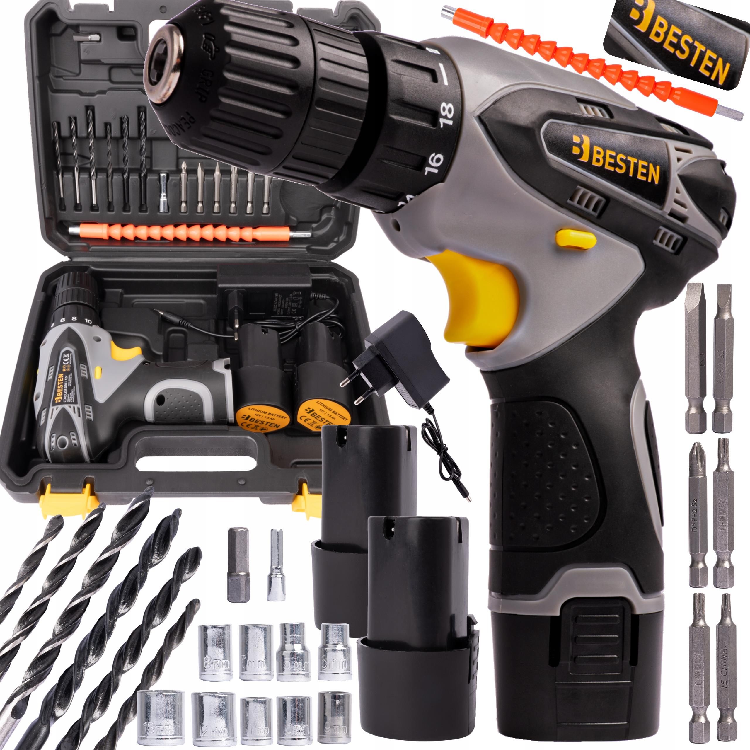 BESTEN WIERTARKO-WKRĘTARKA AKUMULATOROWA BE0002852 12V ► 2xAKU 1.5Ah ► 2 BIEGI 0–400 / 0–1600 RPM ► SPRZĘGŁO 18+1 + TRYB WIERCENIA ► LED + HAMULEC SILNIKA ► BITY, WIERTŁA, NASADEKI + WALIZKA ► POLSKI DYSTRYBUTOR I SERWIS BESTEN ⚡ Dlaczego BESTEN BE0002852 to dobry wybór do domu, garażu i prac …