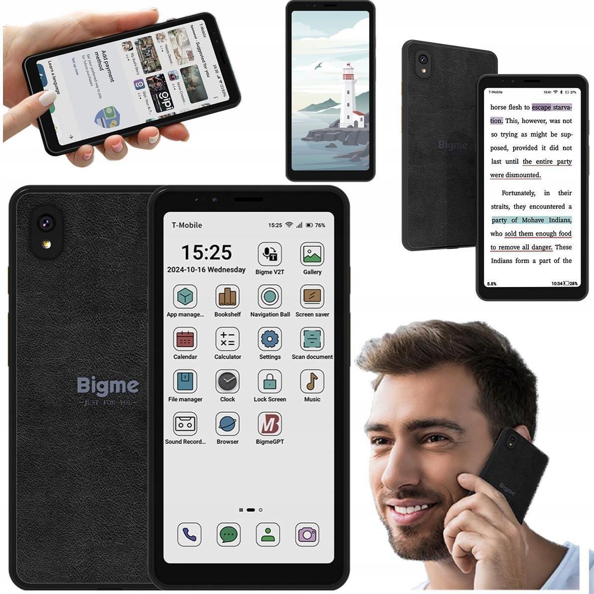 BIGME HIBREAK 2w1 CZYTNIK E-BOOK i SMARTFON kolorowy 5,84" 6/128 GB Bigme HiBreak to innowacyjne urządzenie, które łączy funkcje klasycznego czytnika e-booków z możliwościami smartfona. Czytnik z funkcjami smartfona - wyposażony w slot na kartę SIM. Ekran wykonany w technologii E-Ink. 36-stopniowe regulowane podświetlenie. Czytelny 5,84" kolorowy wyświetlacz. 128 GB wbudowanej pamięci zapewnia wystarczająco dużo miejsca na dużą bibliotekę e-booków. Czytnik obsługuje ponad 19 popularnych formatów e-booków, takich jak EPUB, PDF, MOBI, HTML itp.. Funkcja automatycznego czyszczenia efektu ghostingu. Stabilne połączenie Wi-Fi 2.4G/5G oraz Bluetooth 5.0. Posiada dodatkowo dwie wbudowane aparaty - przód 5MP oraz tył 13MP. czytelny obraz przypominający efekt czytania książki papierowej. 5,84" kolorowy, dotykowy wyświetlacz o wysokiej rozdzielczości 720x1440 px i 276 ppi dla treści czarno-białych oraz 240x480 px i 92 ppi dla kolorów zapewnia ostry obraz i naturalny wygląd tekstu, podobny do tradycyjnej książki. Technologia E-Ink minimalizuje zmęczenie oczu podczas długich sesji czytania. Maksymalna wygoda użytkowania Urządzenie zapewnia wygodę nawet podczas długiego czytania, eliminując zmęczenie oczu typowe dla ekranów LCD. Doskonale sprawdza się zarówno przy lekturze e-booków, jak i podczas przeglądania dokumentów PDF, raportów czy notatek. Rozdzielczość 720x1440px i 276 ppi dla treści czarno-białych oraz 240x480px i 92 ppi dla kolorów gwarantuje ostrość i szczegółowość tekstów oraz obrazów. Urządzenie oferuje nie tylko doskonałą jakość wyświetlanych treści, ale również intuicyjną i przyjemną obsługę. Posiada dwie wbudowane kamery - przednią 5MP oraz tylną 13MP. Twój cyfrowy towarzysz na co dzień Bigme HiBreak to innowacyjne urządzenie, które łączy funkcje klasycznego czytnika e-booków z możliwościami smartfona. Jako narzędzie do precyzyjnej nawigacji sprawdzi się zarówno na codziennych trasach, jak i podczas eksploracji nieznanych miejsc. Niezrównana wydajność Wyposażony w procesor MTK Octa-Core 2.3GHz i 6GB pamięci RAM - co zapewnia płynną pracę, szybkie uruchamianie aplikacji oraz bezproblemowe przełączanie między funkcjami. Wbudowana pamięć wewnętrzna o pojemności 128GB pomieści obszerną bibliotekę e-booków i dokumentów Możliwość rozbudowy za pomocą karty microSD do 1TB. Bateria o pojemności 3300 mAh gwarantuje długotrwałe działanie urządzenia, bez potrzeby częstego ładowania. Pełna elastyczność i wysoka jakość wyświetlanych treści Bigme HiBreak pracuje na systemie Android 11 co daje dostęp do tysięcy aplikacji z Google Play Store. Możesz instalować aplikacje do czytania, notatek, przeglądania internetu, a nawet gry. Zapewnia doskonałą jakość obrazu dzięki technologii usuwania ghostingu, eliminującej ślady poprzednich obrazów - obraz jest wyraźny, czysty i bez zakłóceń, co poprawia komfort czytania. przewracanie stron i aktualizacje treści odbywają się natychmiastowo, a tekst i grafika są zawsze ostre. Szybkie połączenie internetowe Urządzenie oferuje łączność z siecią dzięki obsłudze 4G. Dzięki temu możesz korzystać z szybkiego internetu mobilnego, niezależnie od miejsca, w którym się znajdujesz. Połączenie 4G zapewnia błyskawiczne ładowanie stron internetowych, streaming w wysokiej jakości, szybkie pobieranie i wysyłanie plików, a także wygodną komunikację za pomocą aplikacji czy e-maili. Wyposażony jest w zaawansowane 36-stopniowe regulowane podświetlenie, które pozwala na idealne dopasowanie jasności ekranu do indywidualnych potrzeb użytkownika. Specyfikacja techniczna Wyświetlacz: 5,84" kolorowy E-Ink Rozdzielczość (pX): 720x1440 B/W; 240x480 COLOR PPI: 276PPI B/W 92PPI COLOR Procesor: MTK Octa-Core 2,3 GHz RAM/pamięć wewnętrzna: 6 GB + 128 GB Obsługiwana zewnętrzna karta micro SD Obsługiwana karta SIM Ładowanie USB-C Wbudowany mikrofon Głośnik Aparat przedni 5 MP / tylny 13 MP Łączność: 2,4 G / 5 G WIFI BT: 5,0 GSM: 4G: B1 B2 B3 B5 B7 B8 B20 B28 B34 B38 B39 B40 B41” Formaty plików (odczyt) .doc, .docx, .epub, .fb2, .html, .mobi, .pdf, .prc, .rtf, .txt,itp. 6-stopniowe regulowane przednie światło Pojemność baterii 3300mAh System Android: 11 OS Dodatkowe funkcje Notatki/ChatGPT4.o/Voice To Text/OCR Kolor: Czarny Materiał wykonania: Plastik Ekran dotykowy Wymiary (mm): 76,8*154*8,6 Waga bez etui: 170g Zestaw zawiera smartfon Hibreak z kolorowym ekranem, etui, narzędzie do wyjmowania karty SIM.