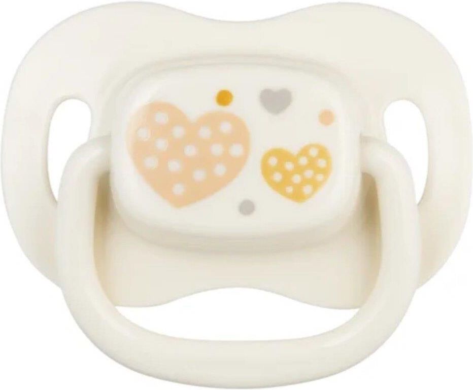 Smoczek uspokajający NEWBORN BABY wykonany z najwyższej jakości, bezzapachowego i bezsmakowego silikonu. Wyposażony w gumkę o symetrycznym kształcie. Zapewnia swobodne oddychanie i połykanie śliny. Smoczek dobrze odpowietrza się, dzięki specjalnym otworom wentylacyjnym na tarczce. Nie zawiera BPA. Dostępny w kilku kolorach. Przeznaczony dla dzieci w wieku 6-18 miesięcy.
