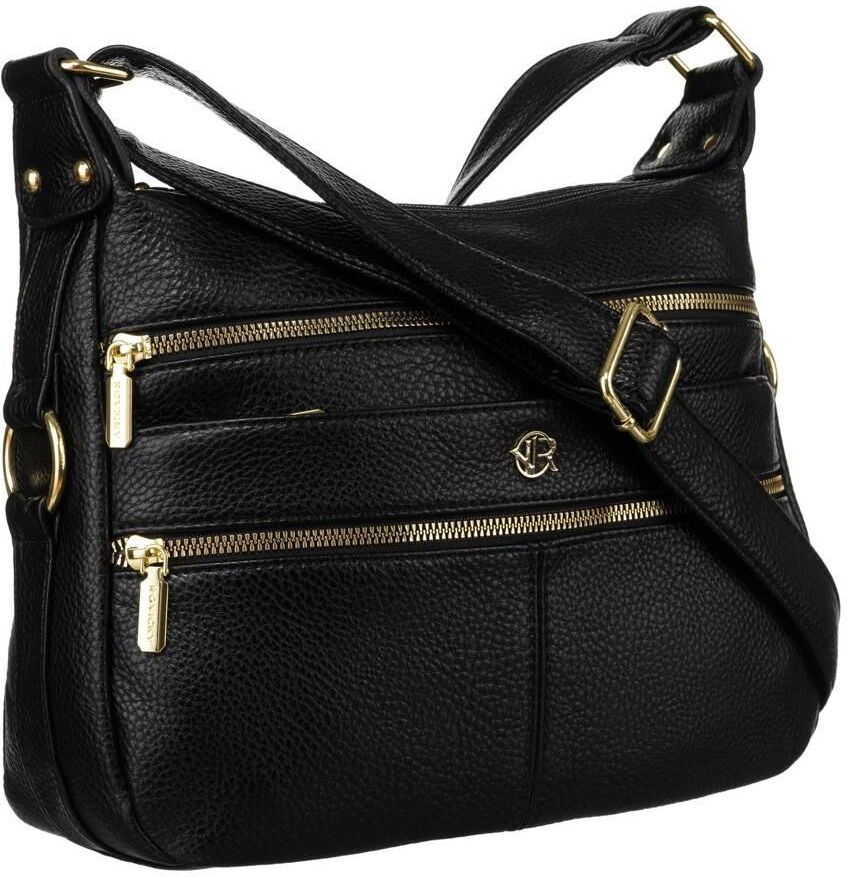 Damska listonoszka ze skóry ekologicznej w czarnym kolorze na regulowanym pasku - Rovicky Grudziądz