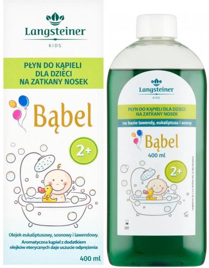 LANGSTEINER Bąbel Płyn do kąpieli na zatkany nosek Pojemność 400 ml Przeznaczenie Do kąpieli i pielęgnacji skóry dzieci w wieku powyżej 2 lat. Właściwości Zdrowie dzieci wymaga szczególnej ochrony. Nie można jednak przesadzić z podawaniem im doustnych środków przeciw bólowi i przeziębieniu. …