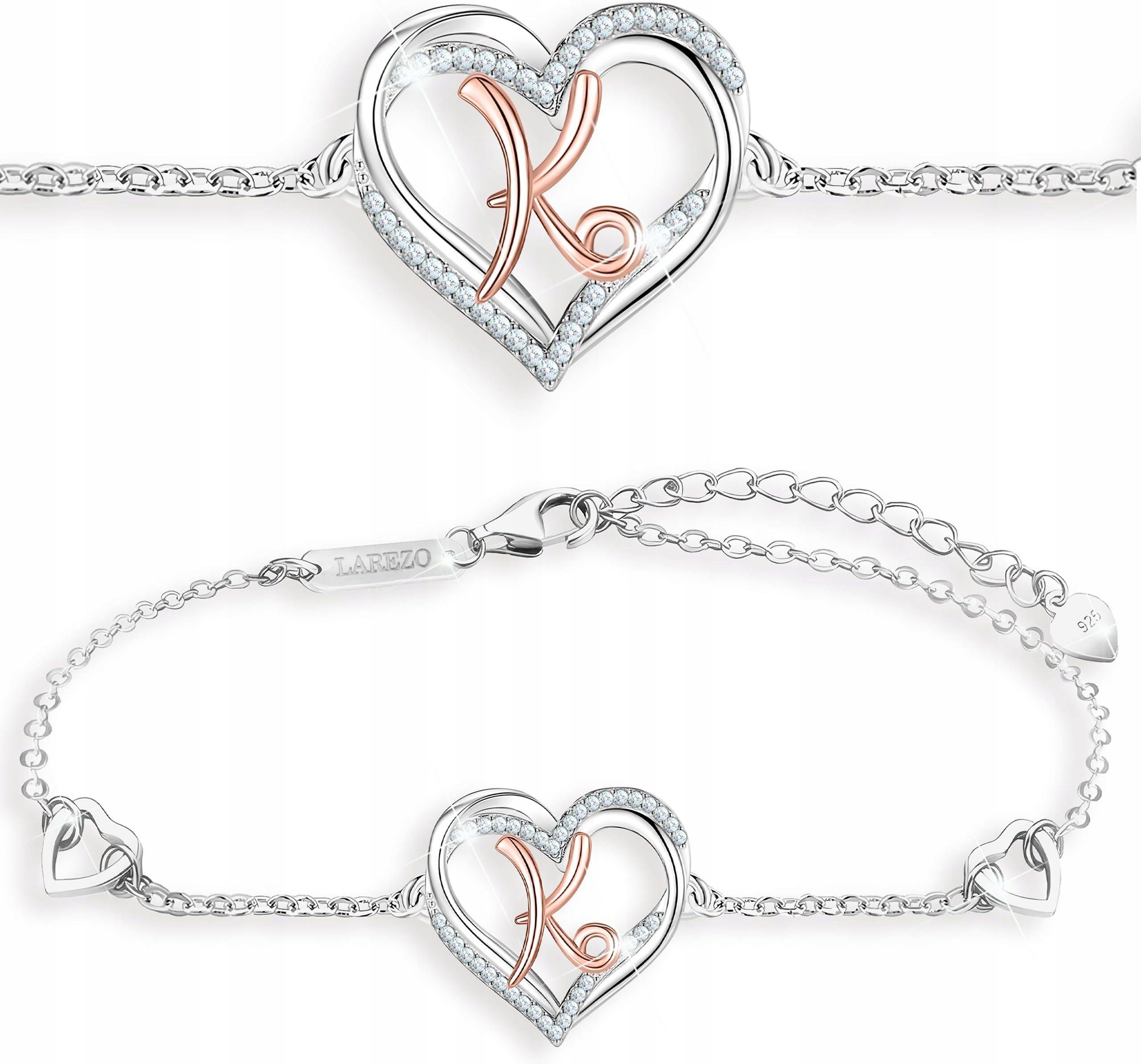 Bransoletka Srebrna Serce Serduszko z Literą Literka Inicjał K SREBRO 925 Grybów