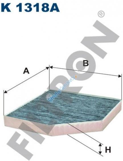 Filtr kabinowy z wkładem węglowym renomowanej firmy Filtron. (zdjęcie produktu jest poglądowe, przy wyborze filtra należy posługiwać się wyszukiwarką na stronie producenta.)