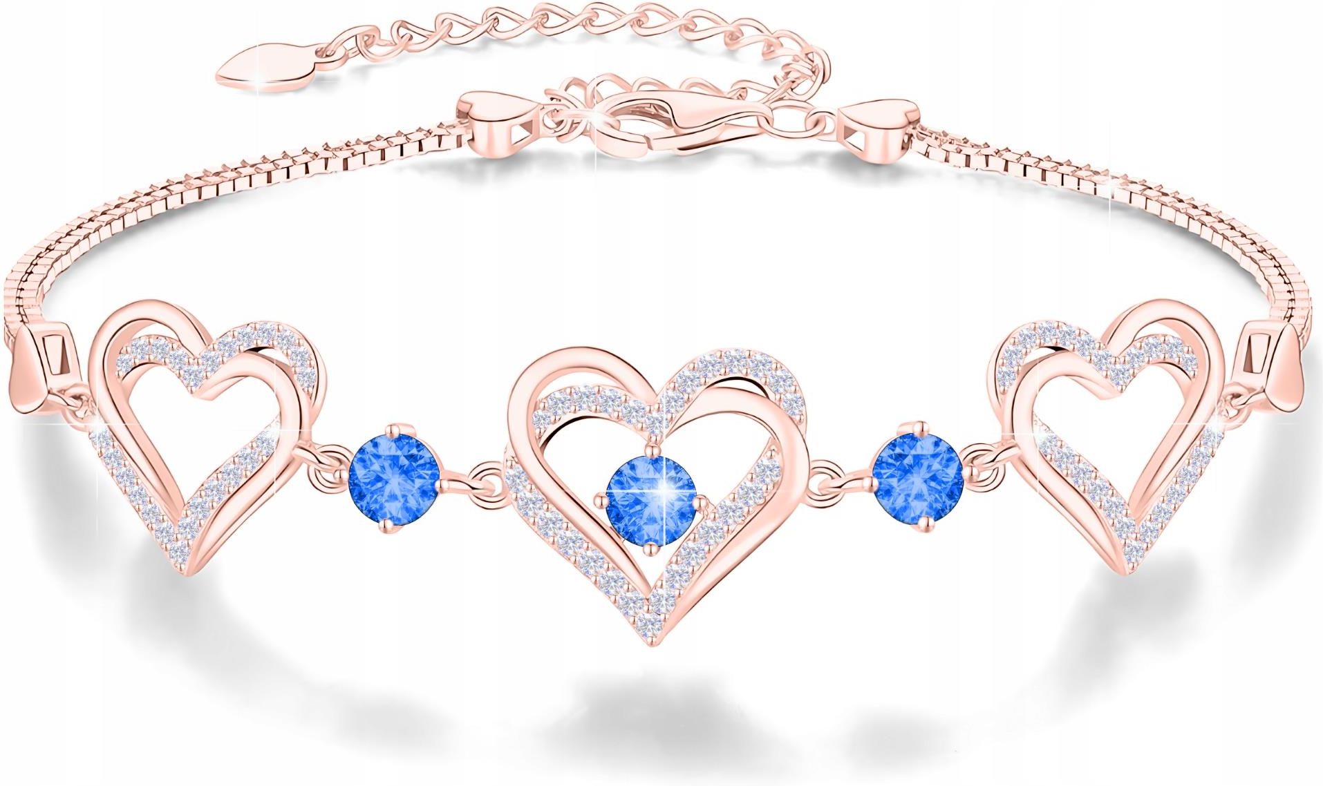 Larezo Bransoletka Trzy Serca z Cyrkoniami Pozłacana 750 Duże Cyrkonie Srebro 925 Grybów