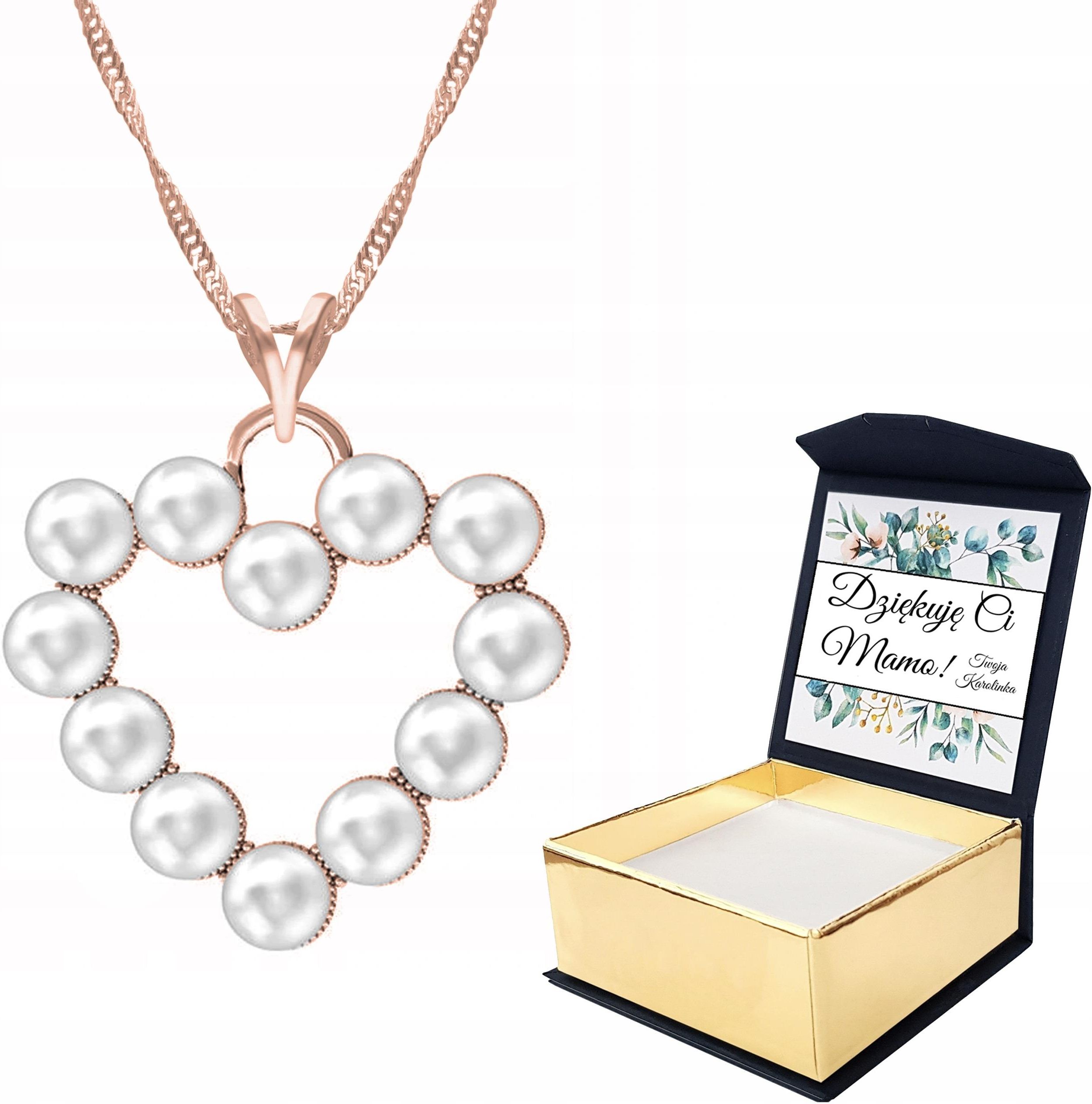 Larezo Naszyjnik różowe złoto Serce Perły + WŁASNY NADRUK Grybów