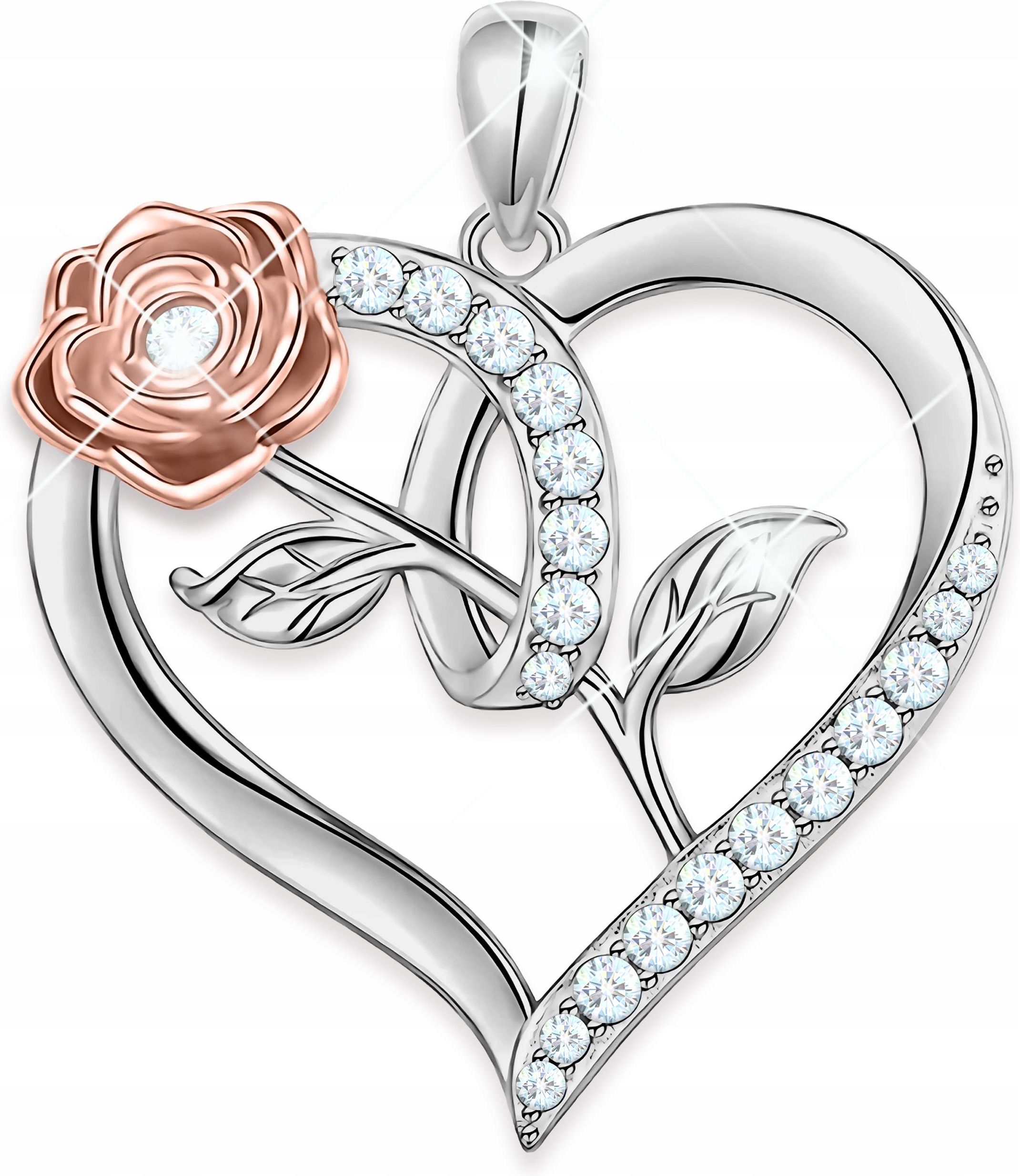 Larezo Zawieszka Srebrna Do Łańcuszka Serce Z Cyrkoniami Pozłacana Róża Srebro 925 Grybów