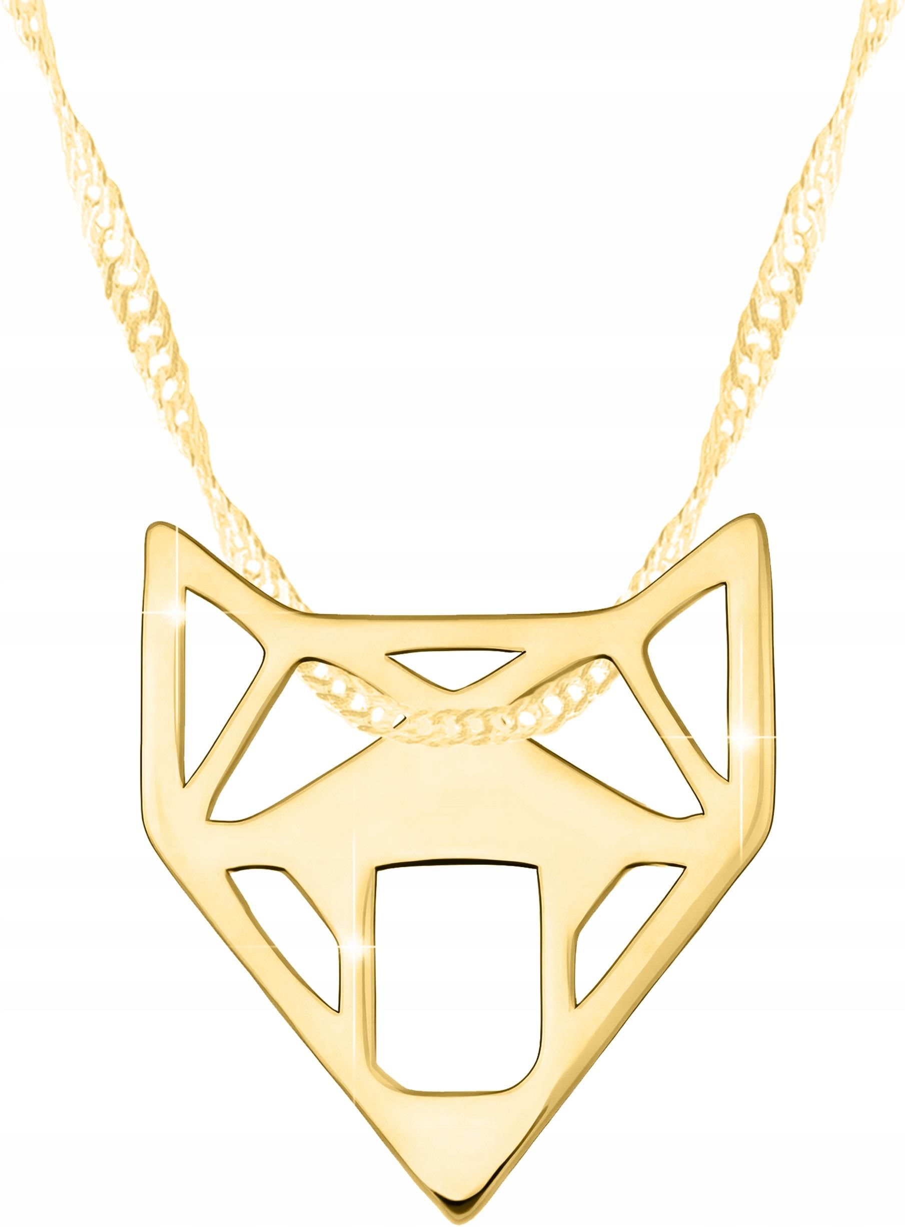 Larezo Złoty Naszyjnik 925 Głowa Wilka Pies Wilk Lis Kot Blaszka z Wilkiem Lisem Grybów