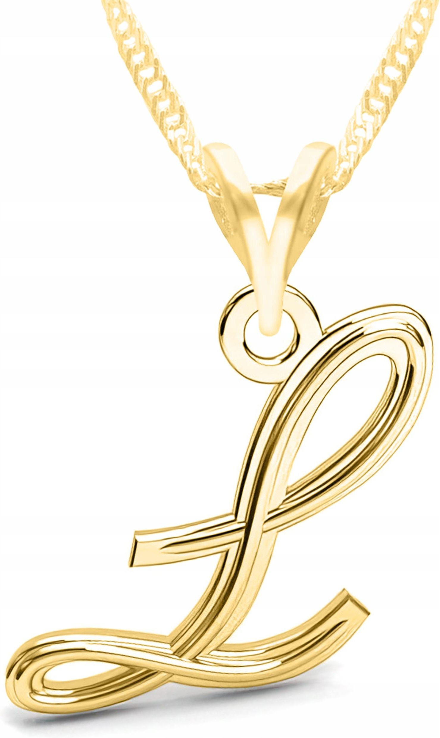 Larezo Złoty Naszyjnik Litera Literka L Inicjał Pozłacany 24K Prezent SREBRO 925 Grybów