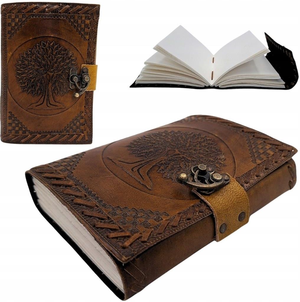 Notes skórzany Vintage Drzewo Życia Dziennik retro 200 stron A6 Skórzany notes vintage z motywem Drzewa Życia Elegancki notes skórzany Vintage – Drzewo Życia AH01 to wyjątkowy notatnik inspirowany klasycznym stylem retro. Okładka wykonana z naturalnej koziej skóry została ozdobiona ręcznie tłoczonym symbolem Drzewa Życia, który symbolizuje rozwój, siłę i harmonię. Ciemny brązowy kolor oraz stylowe wykończenie nadają notesowi charakter przedmiotu z dawnych czasów. To doskonały wybór dla osób, które cenią wyjątkowe przedmioty z duszą i ponadczasowy design. Naturalna skóra i trwałe wykonanie Okładka została wykonana z prawdziwej koziej skóry, która wyróżnia się wysoką trwałością oraz eleganckim wyglądem. Materiał jest odporny na codzienne użytkowanie i z czasem nabiera jeszcze bardziej szlachetnego charakteru. Notes posiada metalowe zamknięcie wciskowe, które chroni kartki oraz nadaje całości stylowego, retro wyglądu. Dbałość o detale oraz solidne wykonanie sprawiają, że notatnik będzie służył przez długi czas. Stylowy pomysł na prezent Notes w stylu vintage retro to doskonały pomysł na prezent dla osób ceniących oryginalne przedmioty. Sprawdzi się dla artystów, pisarzy, studentów, podróżników oraz miłośników rękodzieła. Elegancki wygląd oraz symbolika Drzewa Życia sprawiają, że jest to nie tylko praktyczny notatnik, ale również wyjątkowy przedmiot o charakterze dekoracyjnym. Gruby papier idealny do pisania W środku znajduje się 200 stron białego papieru o gramaturze 125 GSM, który jest wyraźnie grubszy od standardowego papieru biurowego. Dzięki temu notes świetnie sprawdzi się do pisania piórem, długopisem lub ołówkiem, bez obawy o przebijanie tuszu. To idealne miejsce na notatki i zapiski osobisty dziennik szkice i rysunki planowanie podróży kreatywne pomysły Informacje o produkcie Model: AH01 Materiał okładki: naturalna skóra kozia Kolor: brązowy Motyw: Drzewo Życia (tłoczenie) Liczba stron: 200 Rodzaj papieru: 125 GSM Kolor kartek: biały Rozmiar: 18 × 13 cm Zamknięcie: metalowe wciskowe Styl: vintage / retro