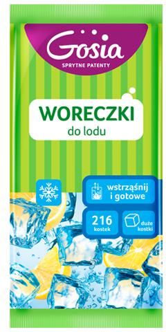 WORECZKI DO LODU DUŻE KOSTKI 216 KOSTEK 5704 GOSIA Woreczki do lodu marki Gosia. To niezbędny produkt do schłodzenia napoi w upalne dni lub podczas imprez. Dzięki ich specjalnej konstrukcji, woreczki są dziecinnie proste w obsłudze. Wystarczy tylko potrząsnąć woreczkiem, a kostki same spadną na jego dno nie rozsypując się, ani nie krusząc. Świetnie sprawdzą się podczas mrożenia wody, soku i innych napoi. Jeden woreczek starcza na zamrożenie aż 216 dużych kostek.