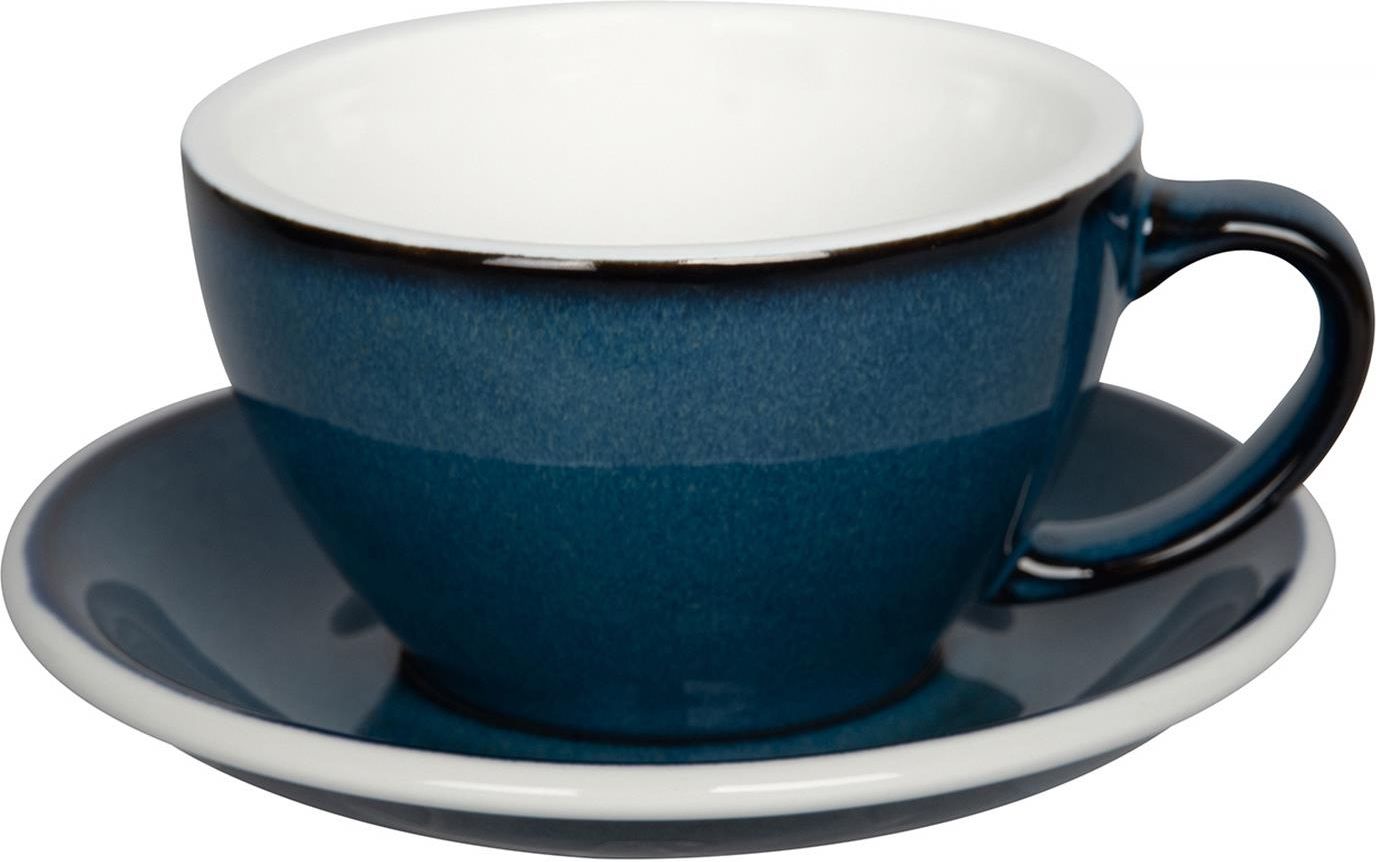 Filiżanka do Cafe Latte ze spodkiem w kolorze granatowym. Loveramics to porcelana tworzona z pasją i miłością. Połączenie tych emocji z ciężką pracą pozwala osiągnąć kunszt i wzbudzić ogromny zachwyt. To właśnie udało się producentom z Hongkongu. Naczynia dostępne w wielu kolorach przyciągają wzrok i wpisują się w najwyższe standardy. Loveramics to oficjalny sponsor Mistrzostw Świata Latte Art 2015 w Gothenburgu. Filiżanka jest stworzona zgodnie z wyznacznikami proponowanymi przez organizacje SCAE oraz SCAA. Grube ścianki pozwalają na utrzymywanie odpowiedniej temperatury kawy przez długi czas, a zaokrąglony kształt dna pozwala na optymalne wydobycie smaku. Naczynia wykonane są z najwyższej klasy porcelany wypalanej w temperaturze 1300℃. Egg Cafe Latte to oficjalne filiżanki Mistrzostw Świata Latte Art 2015 w Gothenburgu. Wymiary: Filiżanka – średnica: 11 cm, wysokość: 7 cm; Spodek – średnica: 15,5 cm, wysokość: 2,5 cm. Ze względu na metodę szkliwienia, egzemplarze w tym kolorze mogą różnić się odcieniem (przykład na zdjęciu).