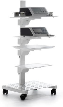 Dwa duże stoliki pod urządzenia typu Surgic Pro oraz Variosurg - np. w sytuacji stawiania ich obu połączonych przez przewód link. Jeden ze stolików jest wyposażony w wygodną rączkę.Wymiary:Wysokość - 100 cmPodstawa - 40 na 45 cmPółka - sz.43 na gł. 24cmPółka - sz. 33 cm na gł. 25 cm