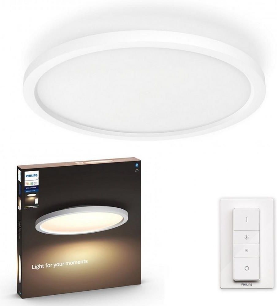 Philips Hue  oświetlenie Aurelle Podłącz oświetlenie panelowe Philips Hue White Ambiance Aurelle do systemu Philips Hue i ciesz się oświetleniem dopasowanym do każej chwili. Jasne białe światło zapewni Ci łatwą pobudkę i doda energii o poranku, naturalne światło dzienne ułatwi koncentrację, a ciepłe, lekko przyciemnione zapewni wieczorny relaks. Regulator przyciemniania w zestawie Wbudowane źródło światła LED Inteligentne sterowanie dzięki mostkowi Hue* Biały Możliwość przyciemniania bez dodatkowej instalacji Poznaj możliwość wygodnego płynnego przyciemnianie światła dzięki Philips Hue. Nie za jasno, nie za ciemno – po prostu idealnie. Bez konieczności dodatkowych instalacji, pomocy elektryka i wystających kabli. Różne tryby oświetlenia: Relaks, Czytanie, Koncentracja i Energia Światło wpływa na nasz nastrój i zachowanie. Philips Hue może pomóc Ci zmienić codzienne czynności w chwile pełne przyjemności. Zamiast porannej kawy wybierz dzienne, chłodne, jasne światło białe, które zapewnia zastrzyk energii dla ciała i umysłu na cały dzień. Zachowaj skupienie dzięki odpowiednio dostosowanemu naturalnemu, jasnemu światłu białemu. Możesz też wyciągnąć się w fotelu i zrelaksować po długim dniu w otoczeniu delikatnie przyciemnionego światła białego. Stwórz wyjątkowy nastrój za pomocą wybranego koloru światła – od ciepłej bieli po jasne światło dzienne Stwórz wyjątkowy nastrój dopasowany do Twoich potrzeb i wykonywanych czynności. Poznaj wszystkie kolory białego światła – od mroźnego białego światła jak z zimowego pejzażu, po naturalne jasne oświetlenie przypominające wiosenny świt czy ciepłą biel zachodzącego letniego słońca. Budź się i zasypiaj w naturalny sposób Philips Hue pomaga wstać z łóżka w dobrym nastroju i w pełni wypoczętym. Stopniowo zwiększająca się jasność światła rozświetla sypialnię niczym wschód słońca. W naturalny sposób delikatnie wybudza domowników, zastępując hałaśliwe i nagłe wyrwanie ich budzikiem z głębokiego snu. Zacznij dzień na spokojnie, a wieczorem zrelaksuj się w otulającym, ciepłym białym świetle, powoli przygotowującym ciało do regenerującego snu. Do skorzystania z tej funkcji potrzebny jest mostek Philips Hue Bridge. Pełna kontrola zdalna kontrola dzięki mostkowi Hue Podłącz oświetlenie Philips Hue do mostka, aby korzystać z nieograniczonych możliwości systemu. Zdalne sterowanie, w domu i na zewnątrz Za pomocą aplikacji mobilnej Philips Hue (dostępna na systemu iOS i Android) można zdalnie sterować oświetleniem z dowolnego miejsca. Będąc poza domem, masz możliwość w każdej chwili sprawdzić, czy wyłączyłeś światło i z łatwością włączyć je na swój powrót. Do zdalnego sterowania oświetleniem konieczny mostek Philips Hue. Ustaw automatyczne harmonogramy włączania i wyłączania się światła Funkcja harmonogramu włączania i wyłączania się światła zapewni Ci wygodę, zarówno gdy jesteś jak i gdy nie ma Cię w domu. Możesz sterować oświetleniem zdalnie, ustawić automatyczne włączanie światła na Twój powrót do domu. Philips Hue to oświetlenie, które możesz całkowicie dostosować do swoich potrzeb – ustawienia światłą w każdym pokoju mogą być różne. Harmonogram wieczorny pozwoli na stopniowe przyciemnianie świateł, aż do całkowitego wyłączenia. Do korzystania z fukncjii automatyzacji oświetlenia niezbędny jest mostek Hue. Steruj światłem jak chcesz Podłącz oświetlenie Philips Hue do mostka i zacznij odkrywać niezliczone możliwości kontroli światła. Steruj oświetleniem za pomocą smartfonu lub tabletu przez aplikację mobilną Philips Hue lub skorzystaj z dedykowanych przełącznikóww obsługujących lampy i żarówki Hue. Ustawiaj zautomatyzowane harmonogramy świecenia, powiadomienia, alarmy i wiele innych funkcji, aby w pełni wykorzystać możliwości systemu Philips Hue. Philips Hue współpracuje takżę z technologiami Amazon Alexa, Apple HomeKit i Google Home, które umożliwiają sterowanie oświetleniem za pomocą głosu. Poznaj Philips HUE