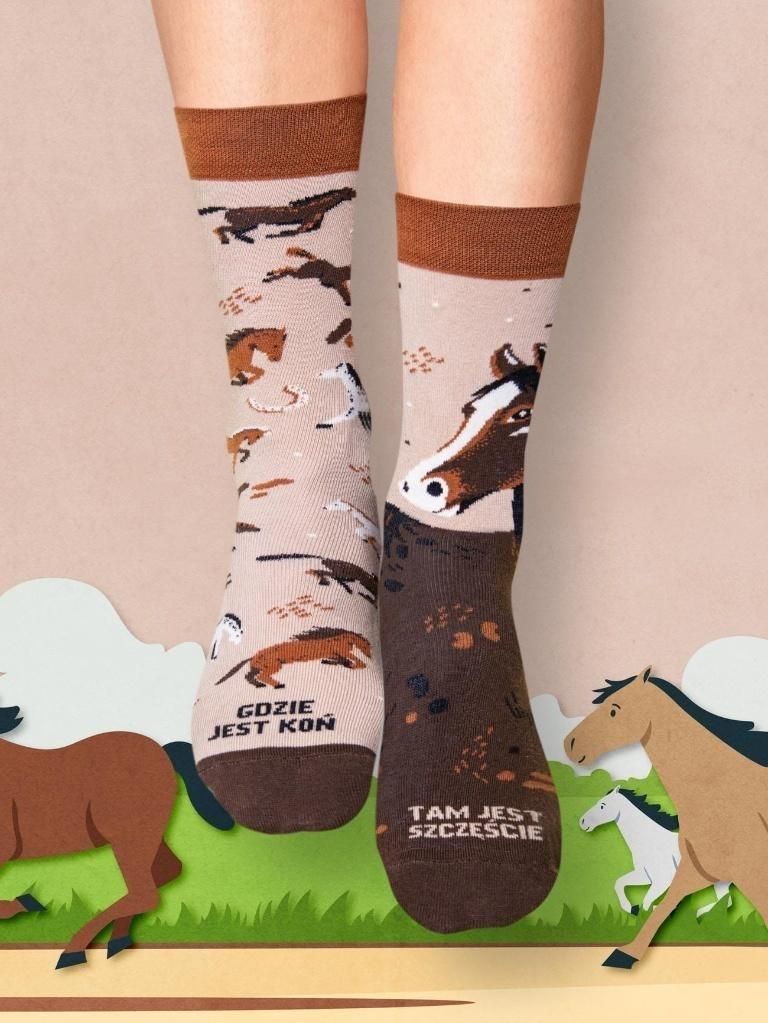 Poczuj kowbojskiego ducha! Marzysz o bezkresnych preriach, galopujących mustangach i życiu pełnym przygód? Wskakuj na siodło w naszych skarpetkach i cwałuj prosto na dziki zachód Polski! Nasze skarpetki KONIE z napisem "Największe szczęście na świecie na końskim leży grzbiecie" to idealny prezent …