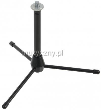 Akmuz NS-1 - statyw mikrofonowy mały/biurkowy * waga produktu 200gram * wysokość produktu 19cm zakończona gwintem 3,8" * odstępy miedzy nóżkami 19cm * podstawa trójnóg ( trzy wkręcane nóżki) * kolor czarny * malowany proszkowo * produkt Polski AKMUZ