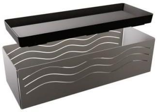 Osłonka na doniczki - Wymiary: 370 mm x 100 mm x 134 mm - Produkt wykonany jest z wysokiej jakości stali nierdzewnej - Produkt występuje w wersji polerowanej (błyszczącej), - Podstawka w osłonce wykonana z plastiku, - Cechą kolekcji jest prosta forma połączona z funkcjonalnością Gwarancja 5 lat …
