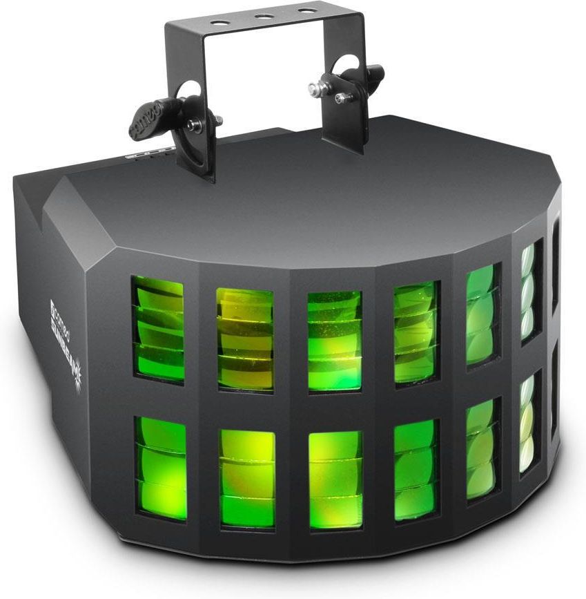 Cameo SUNBEAM – 1 X 8 W RGBA ORAZ EFEKT 1 X 8 W RGBW LED Urządzenie Cameo SUNBEAM to imponujący efekt świetlny typu derby generowany za pomocą dwóch diod Quad LED o mocy 8 W oferujących jaskrawe kombinacje kolorów RGBW i RGBA. 48 precyzyjnych soczewek tworzy wielokolorowe promienie świetlne o niezwykle ostrych krawędziach, dające efekt wypełnienia pomieszczenia. Funkcje stroboskopu i rotacji z różną prędkością tworzą dodatkowo dynamiczne, spektakularne wzory świetlne.