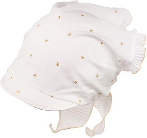 Chustka z daszkiem dla dziewczynki, na słoneczne letnie dni. Z tyłu plisowana szarfa do zawiązania.Czapka z najnowszej kolekcji firmy Jamiks: Natural Collection. Produkt z bawełny organicznej, która pochodzi z ekologicznych upraw, zbi