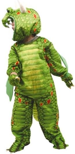 Kostium Przebranie dla Dzieci "Smok" - zabawne przebranie, nie tylko na karnawałowy bal - zapięcie na zamek błyskawiczny - w komplecie smocze łapki - materiał: 100% poliester - idealny na wzrost 100 - 110 cm - wymiary: długość całkowita bez głowy 88 cm, wewnętrzna długość nogawki 36 cm, wewnętrzna długość rękawa 23 cm, długość ogona 33 cm, obwód kołnierza 26 cm