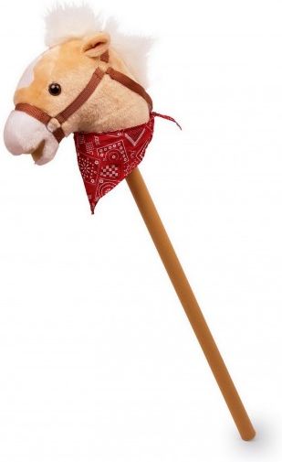 Lajkonik dla Dzieci Jasny - rumak z czerwoną chustą wykonany z miękkiego, przyjemnego w dotyku materiału - po naciśnięciu przycisku w uchu wydaje dźwięki galopowania i rży - nieustraszony przyjaciel małych rycerzy - wymiary: 82 x 27 cm