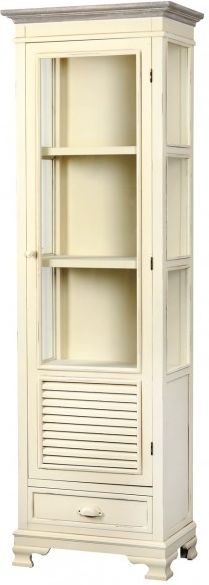 Specyfikacja produktu: Symbol: PE043 Wymiary: 57 x 36 x 180 Kolekcja: Pesaro Materiał: Drewno egzotyczne, płyta MDF, metalowe uchwyty Kolor: Kremowy, wieniec górny jasnobrązowy z przetarciami biało-szarymi Montaż: Mebel wysyłany w całości, zmontowany przez producenta