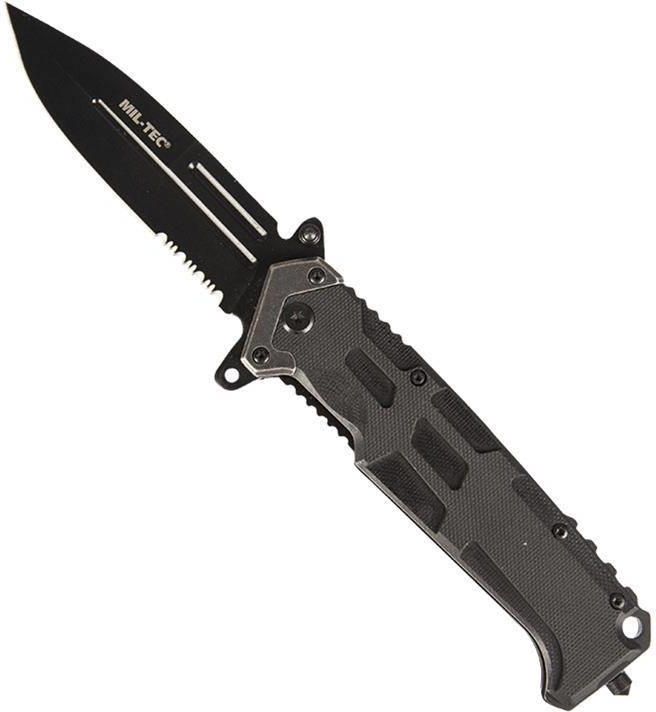 TACTICAL KNIFE ASSAULT G10 SKŁADANY NÓŻ TAKTYCZNY (EDC) produkt niemieckiej marki MIl-Tec solidne wykonanie, dobre materiały stal nierdzewna 440 grafitowa oksydacja klinka o grubości 3 mm głownia Spear Point , precyzyjna 2 zbrocza zwiększają sztywność ostrze COMBO, częściowo ząbkowane ostrze …