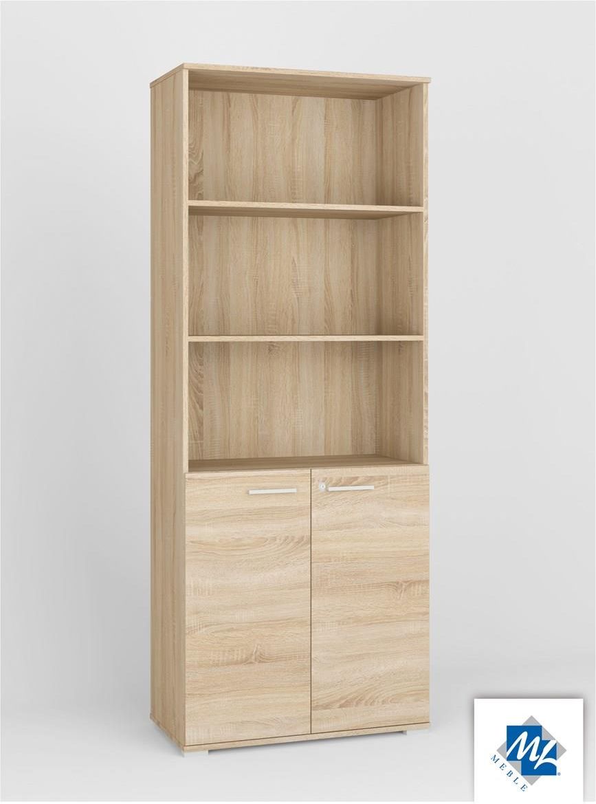 Regał Optimal 04 sonoma jasna Regał dwudrzwiowy o szerokości 79 cm z pięcioma półkami wykonany z płyty laminowanej odpornej na uszkodzenia. Korpus i front szafy w kolorze sonoma jasna. Wymiary: Szerokość (cm): 79 Wysokość (cm): 204 Głębokość (cm): 41 Dane techniczne: Kolor: Sonoma jasna Materiał: płyta laminowana Montaż: Wymaga montażu Liczba półek: 5 Liczba drzwi: 2 OPTIMAL 04 to nietuzinkowy regał, częściowo otwarty; służyć może do przechowywania segregatorów z dokumentacją, do potrzeb bieżących. Dodatkowo regał posiada dwa zamykane na zamek fronty, za którymi znajdują się dwie wnęki. Meble z kolekcji OPTIMAL charakteryzują się ergonomicznością, a przede wszystkim są funkcjonalne. Bryły zostały wykonane z trwałych materiałów w wybarwieniu Sonomy Jasnej lu. Dodatkowym atutem mebli z kolekcji OPTIMAL jest zastosowanie w meblach zamków. Meble zostały wykonane z najwyższej jakości laminowanej płyty meblowej odpornej na uszkodzenia mechaniczne. Kolekcja mebli OPTIMAL to doskonałe rozwiązanie do pomieszczeń biurowych, sal konferencyjnych, gabinetów, biur typu Open Space, a także domowych przestrzeni - podczas urządzania Home Office.OPTIMAL to przede wszystkim funkcjonalność. Różnorodność szaf, regałów i komód, pozwoli na optymalne przechowywanie i archiwizowanie dokumentów. Szeroki wachlarz biurek, zapewni funkcjonalną przestrzeń oraz idealną organizację codziennej pracy.