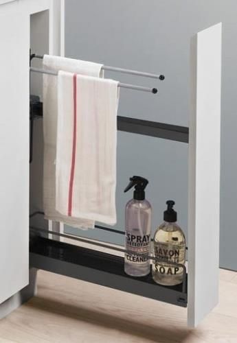 WYCIĄG WĄSKI Z PÓŁKĄ I WIESZAKIEM STYLE/ANTRACYT Wyciąg podblatowy wąski z półką i wieszakiem na ręczniki Style w kolorze antracytowym "15-tka" do szafek dolnych. Dedykowany jest do bardzo wąskich szafek kuchennych i małych przestrzeni użytkowych. Mocowany do frontu szafki, doskonale sprawdza się …