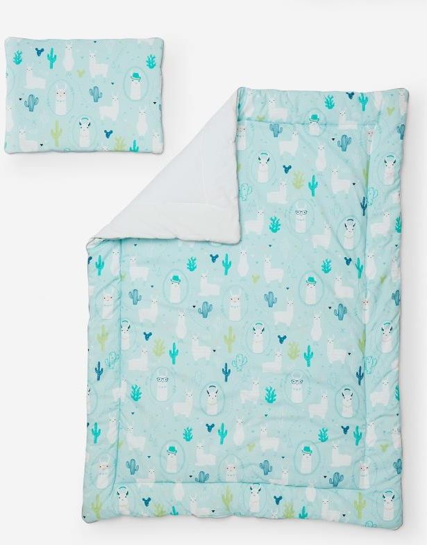 Pościel LAMY w niebieskim odcieniu to gotowy zestaw składający się z kołderki oraz płaskiej poduszki przygotowany do niemowlęcego łóżeczka. Jest to produkt polski.