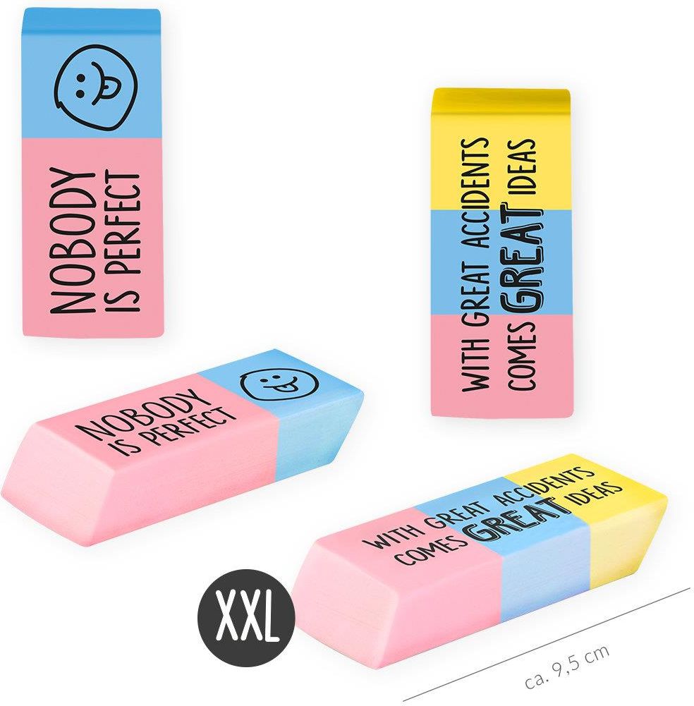 Guma do ścierania XXL 1szt mix wzorów TRENDHAUS __________________________________________________________________ Nikt nie jest doskonały! A z tymi zabawnymi gumkami XXL błędy szybko znów znikną. Idealny towarzysz z fajnymi zestawieniami do szkoły, biura i domu lub jako zabawny pomysł na prezent. …