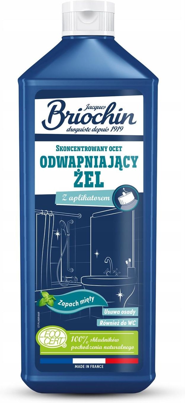 Przedmiotem aukcji sklepu "KLEKS NA ŚCIANIE" jest: ŻEL ODWAPNIAJĄCY Skoncentrowany ocet gospodarczy • Do porcelany, płytek ceramicznych, baterii, WC. • Usuwa wszelki osady z wody, mydła. • 100% składników pochodzenia naturalnego. • Wypełnia łazienkę świeżym aromatem mięty. • Wygodna butelka z aplikatorem. OPIS PRODUKTU Żelowa konsystencja zapewniająca doskonałą przyczepność do powierzchni. Odkamienia, odtłuszcza i usuwa brud z powierzchni, przedmiotów i elementów codziennego użytku. Do porcelany, płytek ceramicznych, baterii, sanitariatów. Specjalna końcówka ułatwia czyszczenie muszli WC. W 100% naturalny aromat miętowy. Wysokie stężenie. STOSOWANIE Pokryć żelem czyszczoną powierzchnię. Pozostawić na kilka minut. Następnie spłukać czystą wodą przy użyciu gąbki. Do stosowania jako uniwersalny środek czyszczący: w łazience (ścianka prysznicowa, chrom, kafelki), w kuchni (lodówka, blat kuchenny, sprzęt AGD). Odkamienianie armatury sanitarnej, baterii, pryszniców i wanien. Ze względu na wysokie stężenie nie należy stosować go na marmurze ani innych wrażliwych na kwasy powierzchniach. Informacje praktyczne: Butelka 750 ml W celu zmniejszenia wpływu na środowisko naturalne przestrzegaj zalecanych ilości. ZALETY PRODUKTU Formuła żelu zapewnia lepszą przyczepność do podłoża i większą skuteczność. Ekologiczny środek czyszczący posiadający certyfikat Ecocert Greenlife zgodny z normą Ecocert, dostępną na stronie detergents.ecocert.com. 100% składników pochodzenia naturalnego. Żel odwapniający 3 w 1 Skoncentrowany żel odwapniający to uniwersalny środek do czyszczenia różnych powierzchni zarówno w łazience jak i w kuchni. Rewelacyjna żelowa konsystencja zapewnia doskonałą przyczepność do powierzchni, co pozwala umyć nawet gładkie elementy pionowe. Skoncentrowany żel jest w 100% naturalny. Ze względu na dużą zawartość octu gospodarczego wyróżnia go wysoka skuteczność w usuwaniu nawet grubych osadów z kamienia, wody czy kosmetyków. Produkt perfekcyjnie zmywa zabrudzenia, odtłuszcza i nabłyszcza powierzchnie. Efektywne odwapnianie łazienki. Skoncentrowany żel octowy błyskawicznie odwapnia i nabłyszcza porcelanę, płytki ceramiczne, baterii, wannę, kabinę prysznicową. Opakowanie preparatu na bazie octu z aplikatorem pozwala głęboko wyczyścić nawet muszlę WC. Gruntowne odtłuszczanie powierzchni kuchennych. Żel octowy Briochin świetnie czyści i usuwa tłuste zabrudzenia z blatów kuchennych, lodówki, sprzętu AGD itp. Odświeżanie pomieszczenia po sprzątaniu. Żel na bazie octu zawiera tylko składniki pochodzenia naturalnego, w tym również olejek zapachowy. Po zastosowaniu preparatu “Skoncentrowany żel odwapniający” Briochin pomieszczenie wypełni przyjemny i delikatny zapach świeżej mięty. Ekologiczny żel octowy posiada certyfikat ECOCERT Greenlife zgodnie ze standardem ECOCERT dostępnym na stronie http://detergents.ecocert.com. Opakowanie nadaje się do recyklingu Poznaj pełną gamę eko środków czystości Briochin i zadbaj o czystość w swoim domu. Jak stosować naturalny żel octowy? Uniwersalny środek czyszczący służy do stosowania w różnych pomieszczeniach: w łazience (ścianka prysznicowa, chrom, kafelki, WC), w kuchni (lodówka, blat kuchenny, sprzęt AGD). Pokryj powierzchnię żelem octowym. Pozostaw na kilka minut. Wyczyść gąbką lub szczotką. Dokładnie spłucz powierzchnię wodą. Zalecenia do stosowania środku skoncentrowanego na bazie octu Przed pierwszym użyciem wykonaj wstępną próbę reakcji podłoża w mało widocznymi miejscu. Nie stosuj na powierzchniach porowatych i wrażliwych na kwasy (marmur, kamień wapienny). Stosuj w dobrze wentylowanym pomieszczeniu. Nie mieszaj z innymi produktami, a zwłaszcza z chlorem. Stosuj zgodnie z instrukcją użytkowania. Aby zmniejszyć wpływ na środowisko przestrzegaj zalecanego dozowania. Skład produktu “Żel Odwapniający” Briochin >30% OCET (naturalnie usuwa osad mineralny); KWAS MLEKOWY (dla wzmocnienia odwapniania); WODA (do wymieszania aktywnych składników); SUBSTANCJE POWIERZCHNIOWO CZYNNE NIEJONOWE (dla dobrego czyszczenia); ŚRODEK ZWIĘKSZAJĄCY LEPKOŚĆ (dla większej gęstości i żelowej formy); ZAPACH (aromat naturalny). 100% składników pochodzenia naturalnego.
