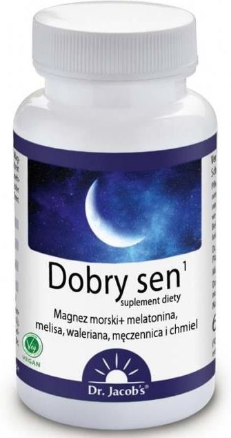 Dobry sen Dr. Jacobs suplement diety Zawartość netto 66g, 90 tabletek 90 porcji - 0,99 zł za porcję Melatonina pomaga w skróceniu czasu potrzebnego na zaśnięcie. Magnez, ekstrakt z szyszek chmielu, kozłka lekarskiego (waleriany), melisy i męczennicy (passiflora) plus olejek lawendowy. produkt wegański Dobry sen Dr. Jacob‘s to połączenie melatoniny, magnezu oraz ekstraktów z melisy, kozłka lekarskiego (waleriany), męczennicy (passiflora) i szyszek chmielu. Melatonina – pomaga w skróceniu czasu potrzebnego na zaśnięcie Naturalny magnez o wysokiej biodostępności m.in. przyczynia się do zmniejszenia uczucia zmęczenia i znużenia Ekstrakty z kozłka lekarskiego, melisy, passiflory i chmielu Kojący olejek lawendowy Melatonina Melatonina to „hormon snu”, który reguluje rytm dnia i nocy naszego organizmu. Pomaga w skróceniu czasu potrzebnego na zaśnięcie., także w przypadku działania czynników zaburzających (np. pełnia księżyca, praca na nocną zmianę, rozregulowany rytm dobowy, itp.). Ten pozytywny efekt występuje, jeśli zażyjesz 1 mg melatoniny tuż przed pójściem spać (ok. 30 min przed planowanym snem). Melatonina pomaga w łagodzeniu subiektywnego odczucia zespołu nagłej zmiany strefy czasowej (jetlag), czyli trudności z dostosowaniem się do nowej strefy czasowej w trakcie dalekich podróży. Wtedy należy stosować ją już od pierwszego dnia podróży na ok. 30 min przed planowanym snem i później przez dni kolejne, aż do przestawienia się na lokalny czas. Dobry sen Dr. Jacob's zawiera 1 mg melatoniny w porcji (1 tabletka). Magnez morski – dla układu nerwowego i funkcji psychologicznych Magnez nazywany jest również minerałem relaksacyjnym. Stosowany przez nas magnez to specjalna, udoskonalona forma magnezu. Magnez morski to kompleks magnezowo-aminowy, który ma szczególnie wysoką biodostępność i bioaktywność. Naturalny magnez połączony jest z aminokwasami z białka ryżowego. W takim połączeniu magnez jest szczególnie biodostępny dla naszego organizmu – nawet lepiej niż glicynian magnezu czy glicerofosforan magnezu. Magnez zawarty w produkcie Dobry sen Dr. Jacob's ma naukowo udowodniony korzystny wpływ na następujące funkcje organizmu: pomaga w prawidłowym funkcjonowaniu układu nerwowego, przyczynia się do zmniejszenia uczucia zmęczenia i znużenia przyczynia się do utrzymania prawidłowego metabolizmu energetycznego pomaga w utrzymaniu prawidłowych funkcji psychologicznych Sprawdzone ekstrakty roślinne dla lepszego efektu Porcja (tabletka) produktu Dobry sen Dr. Jacob's zawiera bioaktywne substancje w postaci ekstraktów z następujących roślin: kozłek lekarski (waleriana) - 170 mg, liść melisy - 68 mg, ziele męczennicy (passiflora) - 68 mg, szyszki chmielu - 34 mg, olejek lawendowy - 7 mg. Ekstrakt z szyszek chmielu – działanie uspokajające (kojące), działanie wspomagające dobry sen. Ekstrakt z korzenia kozłka lekarskiego (waleriana) pomaga utrzymać naturalny sen. Pomaga utrzymać normalną jakość snu. Ekstrakt z męczennicy (passiflora) do stosowania dla zdrowego snu, promuje dobry i zdrowy nocny odpoczynek. Ekstrakt z ziela melisy - Przyczynia się do optymalnego relaksu. Pomaga utrzymać zdrowy sen. Olejek lawendowy Porcja zalecana do spożycia w ciągu dnia: tabletka popita wodą na ok. 30 min przed planowanym zaśnięciem. Składniki: kompleks magnezowo-aminowy (tlenek magnezu (morski), hydrolizat białka ryżowego; 26 %), ekstrakt z kozłka lekarskiego (20 %), ekstrakt z melisy (8 %), ekstrakt z męczennicy (8 %), ekstrakt z chmielu (4 %), substancje przeciwzbrylające – celuloza i sole magnezowe kwasów tłuszczowych (roślinne), olejek lawendowy (1%), melatonina (0,2 %). Może zawierać śladowe ilości orzechów. Nie należy przekraczać zalecanej porcji do spożycia w ciągu dnia. Przechowywać w sposób niedostępny dla małych dzieci. Suplement diety nie może być stosowany jako substytut (zamiennik) zrównoważonej diety. Ważna jest zrównoważona dieta oraz zdrowy tryb życia. Oświadczenia dotyczące składnika produktu - męczennicy (Passiflora incarnata): Nie stosować u dzieci, kobiet w ciąży i w trakcie laktacji. Nie stosować dłużej niż 12 tygodni. Produkty zawierające męczennicę (Passiflora incarnata) mogą powodować senność i wpływać negatywnie na zdolność prowadzenia pojazdów i obsługi maszyn. Nie stosować z innymi substancjami wpływającymi na ośrodkowy układ nerwowy. Oświadczenie dotyczące składnika produktu - melatoniny: Nie należy prowadzić pojazdów ani obsługiwać maszyn, jeśli odczuwa się senność następnego dnia po zażyciu melatoniny. W opakowaniu jest saszetka z pochłaniaczem wilgoci – nie spożywać! Nasze dodatkowe rady dotyczące lepszego snu: Przygotuj się do snu - co najmniej na pół godziny przed snem zacznij robić coś, co cię odpręża, np.: spacer, praca w ogrodzie, ciepła kąpiel, inna ulubiona forma relaksu. Unikaj oglądania telewizji lub surfowania po internecie przed snem. Oba te elementy sprawiają, że umysł jest pobudzony a wysoki udział niebieskiego światła na wyświetlaczach zakłóca naturalny cykl snu i czuwania. Staraj się nic nie jeść po 18:00. W przeciwnym razie organizm jest zbyt zajęty trawieniem. Podświadomie odbieramy to we śnie i śpimy bardziej niespokojnie. Spożywanie przed snem słodyczy podnosi poziom glukozy i działa pobudzająco. Podobnie mogą działać owoce, które dodatkowo mogą powodować konieczność obudzenia się w nocy w celu oddania moczu. Podobne efekty może spowodować wypijanie zbyt dużej ilości napojów, szczególnie słodzonych lub soków owocowych. Śpij w pomieszczeniu o temperaturze poniżej 20 stopni C z dostępem świeżego powietrza. Pomieszczenie do snu powinno być dobrze zaciemnione - oświetlenie czy światło latarni na ścianach może być odbierane przez zamknięte oczy i powodować pogarszanie jakości snu. Nasz organizm wytwarza 