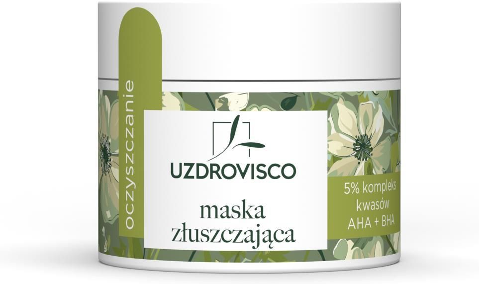 Uzdrovisco Cykl Odnowy Skóry maska złuszczająca z 5% kompleksem kwasów AHA Producent: UZDROVISCO EAN: 5904917482322 Maska złuszczająca ODKRYTE PIĘKNO do skóry mieszanej i wrażliwej – wygładza, oczyszcza i wyrównuje koloryt bez przesuszania.Skuteczna, a jednocześnie łagodna maska złuszczająca stworzona z myślą o cerze normalnej, mieszanej i wrażliwej. Idealna dla skóry, która potrzebuje oczyszczenia, wygładzenia, odświeżenia oraz wyrównania kolorytu – bez efektu przesuszenia. Kremowa konsystencja i starannie dobrane składniki aktywne zapewniają wyjątkowy komfort stosowania. Tajemnica skuteczności:5% KOMPLEKS KWASÓW: AHA + BHAUnikalne połączenie alfa- i beta-hydroksykwasów. – AHA (kwasy owocowe) delikatnie złuszczają martwe komórki naskórka, wygładzają powierzchnię skóry i poprawiają jej koloryt. – BHA (kwas salicylowy) działa głębiej – przenika do wnętrza porów, oczyszcza je i reguluje wydzielanie sebum, przeciwdziałając niedoskonałościom. GLINKA BIAŁANaturalny składnik o właściwościach oczyszczających i detoksykujących. Absorbuje nadmiar sebum, wspomaga usuwanie zanieczyszczeń i delikatnie matuje cerę bez naruszania jej równowagi hydrolipidowej. W formule znajdują się również: emolient z nasion ostropestu, skrobia kukurydziana. Maska zawiera 98% składników pochodzenia naturalnego! Idealna jako regularny element pielęgnacji skóry potrzebującej odświeżenia, oczyszczenia i przywrócenia naturalnego blasku – bez podrażnień. EFEKTY: • Oczyszczanie• Redukcja niedoskonałości• Wygładzenie skóry• Rozjaśnienie• Nawilżenie Sposób użycia:Nałóż maskę na oczyszczoną skórę twarzy, omijając okolice oczu i ust. Pozostaw na skórze przez 5-10 minut, a następnie dokładnie spłucz letnią wodą. Stosuj regularnie, 1-2 razy w tygodniu.