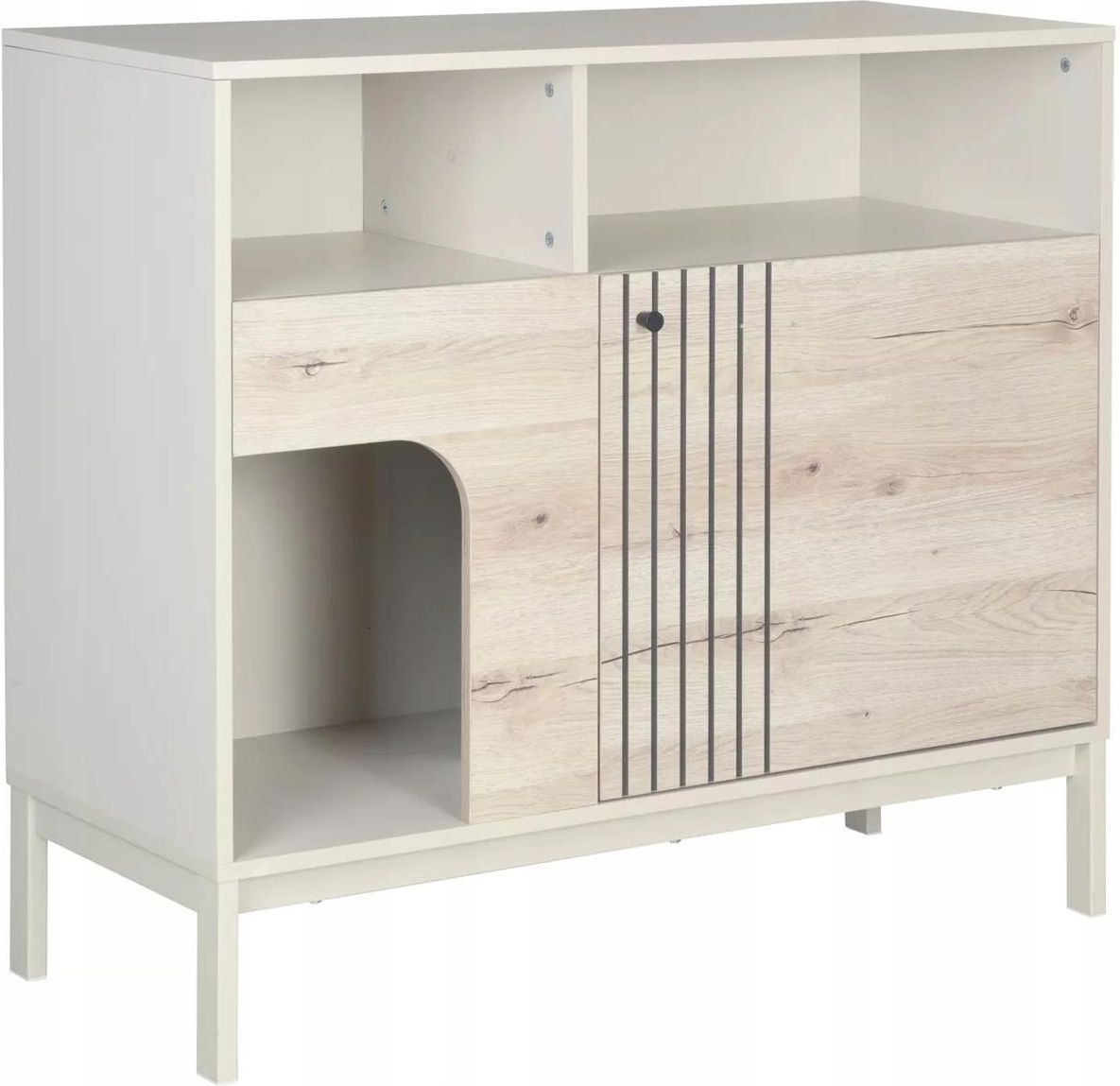Signal Meble - Elegancja, Funkcjonalność, Unikalny Styl Komoda do Salonu Pokoju dziennego Stylowa Biały Dąb Alpejski FROST K SIGNAL Komoda, blat: płyta laminowana, stelaż: metal, kolor: off white + dąb alpejski / off white. Dane techniczne Długość: 100 cm Szerokość: 40 cm Rodzaj: komoda Kolor …