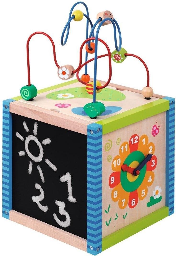 Drewniana kostka edukacyjna manipulacyjna sorter przeplatanka XL Cechy produktu wiek: 18m+ wysokość: 30 cm materiał: drewno pętla motoryczna znajdująca się na górze zabawki drewniane liczydło zegar do nauki mini tablica labirynt zabawka pomaga rozwijać zdolności manualne i motoryczne dziecka nauka …