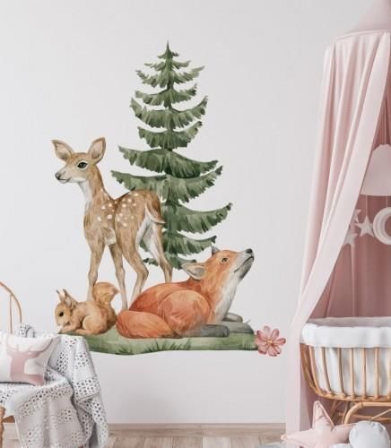 Zestaw leśnych naklejek na ścianę dla dzieci zawierający lisa, jelenia i wiewiórkę wraz z drzewkiem. W tej cenie kupujecie Państwo następujące elementy:jelenia, lisa, wiewiórkę, żołędzia, kępkę trawy, 2 kwiatki, drzewko (w przypadku rozmiaru XXL - 2 drzewka) Naklejka jeleń i lis w lesie jest …