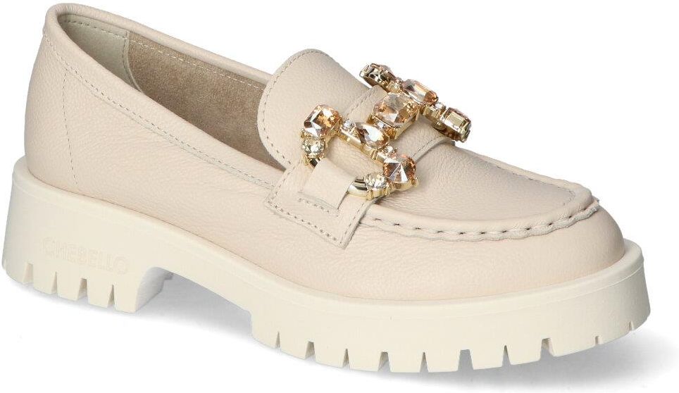 Wyjątkowe mokasyny znanej marki CheBello:- cholewka wykonana została ze skóry naturalnej licowej - wnętrze pokryte zostało materiałem tekstylnym aby zapewnić komfort podczas użytkowania - wkładka wewnętrzna została wykonana ze skóry naturalnej - podeszwa o grubości 4 cm zapewnia odpowiednią stabilizację - beżowy kolor, piękna złota ozdoba i modny fason tworzą niesamowity efekt!