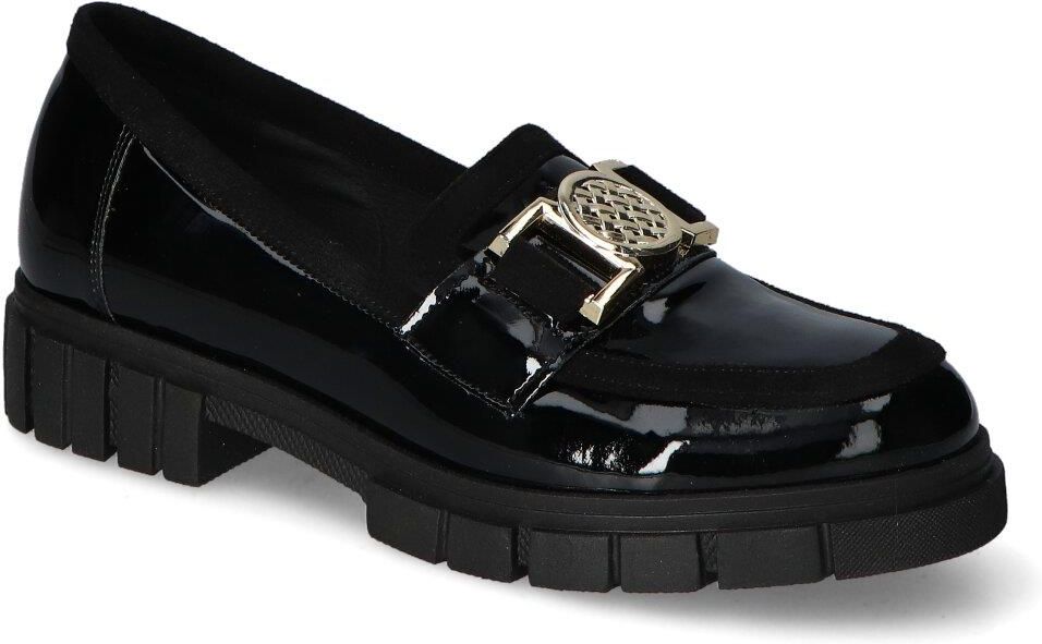 Eleganckie mokasyny polskiej marki For-But: - cholewka wykonana została ze skóry ekologicznej lakierowanej i ekozamszu - wnętrze pokryte zostało skórą ekologiczną aby zapewnić komfort podczas użytkowania - wkładka wewnętrzna wykonana została ze skóry ekologicznej - obcas o wys. 3,5 cm zapewnia odpowiednią stabilizację - czarny kolor, stylowa ozdoba oraz elegancki fason tworzą efekt, który zachwyci każdą kobietę!