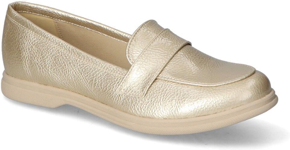 Wygodne mokasyny marki Marko-but: - cholewka wykonane z najlepszej jakości skóry ekologicznej - wnętrze pokryte zostało skórą ekologiczną - wkładka wewnętrzna pokryta skóra ekologiczną - obcas o wys. 2 cm zapewnia odpowiednią stabilizację - złoty kolor i modny fason tworzą idealne połączenie, które zachwyci każdego!