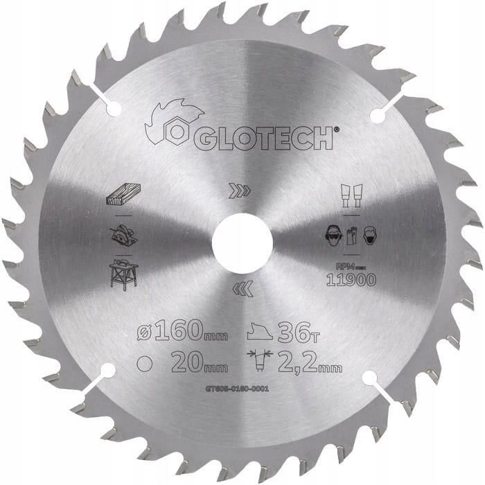 Piła tarczowa HM do elektronarzędzi 160x20x2,2/1,4/36z GS15 GLOTECH do drewna, do pilarek ręcznych GT605-0160-0001 Globus Hajnówka