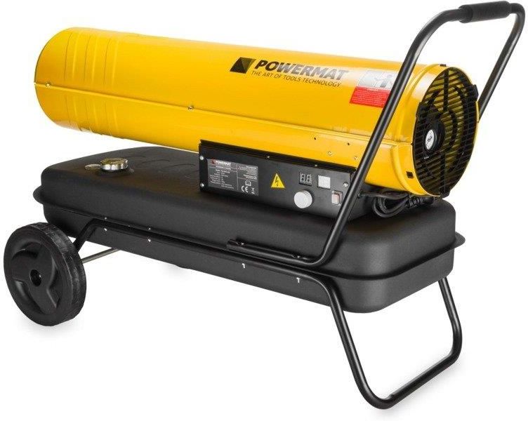NAGRZEWNICA DMUCHAWA OLEJOWA SPALINOWA KOMIN 65KW Model: PM-NAG-65MK / PM1143 Producent: POWERMAT Mobilna nagrzewnica olejowa z kominem o mocy 65 kW, znajdzie swoje zastosowanie przy ogrzewaniu dużych pomieszczeń. Jest to bezpieczne, trwałe i proste w obsłudze urządzenie. DANE TECHNICZNE Moc: 65000 W Zasilanie: 230 V / 50 Hz Przepływ powietrza: 1100 m³/h Rodzaj paliwa: olej napędowy, lekki olej opałowy Maksymalne zużycie paliwa: 4 l/h Zalecana do powierzchni: >200 m² Moc wentylatora: 430 W Pojemność zbiornika paliwa: 68 L Wymiary urządzenia: 1170 x 540 x 690 [mm] Waga nagrzewnicy: 52 kg Waga z opakowaniem: ok. 55 kg RENOMOWANY PRODUCENT, ERGONOMICZNY DESIGN, NOWOCZESNE ROZWIĄZANIA - TO CECHY WYRÓŻNIAJĄCE PREZENTOWANY PRODUKT NA TLE KONKURENCJI ERGONOMIA Wbudowany 5-łopatkowy wentylator o wysokiej wydajności zapewni przepływ powietrza do 1100 m³/h. Wysokiej klasy silnik, wbudowany zapłon piezoelektryczny oraz zabezpieczenie przed przegrzaniem odcinające dopływ paliwa zagwarantuje wydajną i bezpieczną pracę. Nagrzewnica olejowa doskonale sprawdzi się podczas ogrzewania warsztatów, hal, magazynów itp. CECHY PRODUKTU Automatyczny palnik olejowy Wbudowany wskaźnik ciśnienia paliwa Uchwyt na przewód zasilający Komora spalania ze stali nierdzewnej INOX Funkcja wychładzania komory spalania Elektroniczny czujnik zapłonu Termostat przegrzania Wyświetlacz LCD CYFROWY TERMOSTAT Nagrzewnica wyposażona jest w cyfrowy termostat z płynną regulacją temperatury. Zapewnia on wysoką wydajność cieplną i oszczędność paliwa. Po osiągnięciu zadanej temperatury następuje automatyczne wyłącznie nagrzewnicy, a następnie ponowny automatyczny rozruch gdy temperatura spadnie poniżej temperatury ustawionej na wyświetlaczu. Zmniejsza to zużycie paliwa oraz umożliwia utrzymywanie odpowiedniej stałej temperatury w pomieszczeniu. Elektroniczne sterowanie temperaturą, dwa wyświetlacze: do ustawienia temperatury grzania oraz pokazujący aktualną temperaturę otoczenia. KOMIN DO ODPROWADZANIA SPALIN Zaletą nagrzewnic olejowych z odprowadzeniem spalin jest oczywiście, wydmuchiwane ogrzanego powietrza całkowicie wolnego od dymu. Cechy takie jak natychmiastowa gotowość do rozpoczęcia pracy, prostota obsługi i mobilność, umożliwiająca wykorzystanie jednego urządzenia w różnych miejscach sprawia, że znajdują zastosowanie w praktycznie każdej branży. Nagrzewnice przenośne z odprowadzeniem spalin cieszą się szczególną popularnością w sektorach takich jak budownictwo i prace remontowe, rolnictwo, warsztaty i magazyny, imprezy okolicznościowe, sytuacje kryzysowe, a nawet terenowe działania wojskowe. CHARAKTERYSTYKA PRACY URZĄDZENIA Wentylator wymusza przepływ zimnego powietrza przez urządzenie i kieruje je w stronę wylotu nagrzewnicy. Paliwo pobrane ze zbiornika wtryskiwane jest przez dyszę do zamkniętej komory spalania, gdzie elektroda wyzwala zapłon. Płomień rozgrzewa wymiennik ciepła, a spaliny odprowadzane są na zewnątrz przez komin w górnej części obudowy. Energia cieplna zostaje przekazana do powietrza okalającego wymiennik i jest wydmuchiwana z nagrzewnicy w postaci jednostajnego strumienia czystego i gorącego powietrza. WSKAŹNIK POZIOMU PALIWA Wbudowany wziernik informuje o stanie poziomu paliwa. Urządzenie zostało wyposażone dodatkowo w zewnętrzny filtr paliwa, który blokuje wszystkie nieczystości. MOBILNOŚĆ URZĄDZENIA Duże koła jezdne zapewniają bezpieczniejszy i łatwiejszy transport urządzenia.